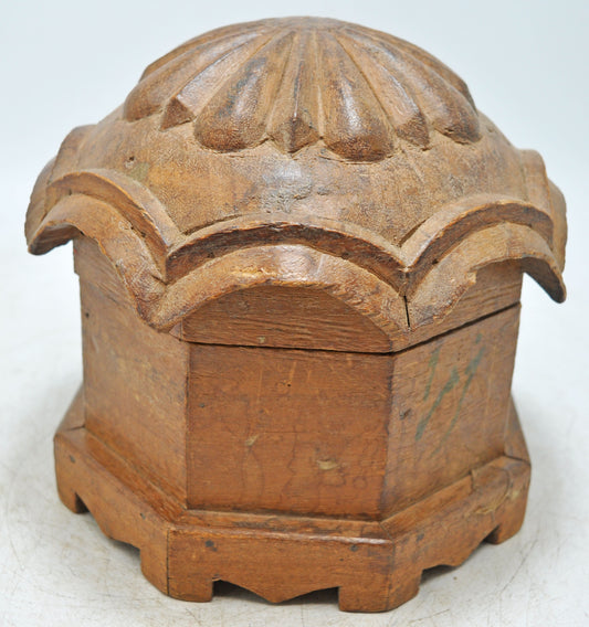 Vintage Wooden Octagonal Dome Shaped Storage Box Original Old Hand Crafted