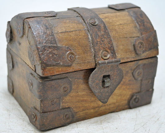 Vintage Wooden Small Half Round Storage Box Original Old Hand Crafted Metal Fitted