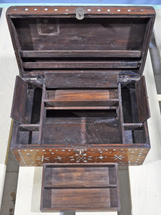 Antique Wooden Large Storage Chest Box Original Old Mother of Pearl Inlay