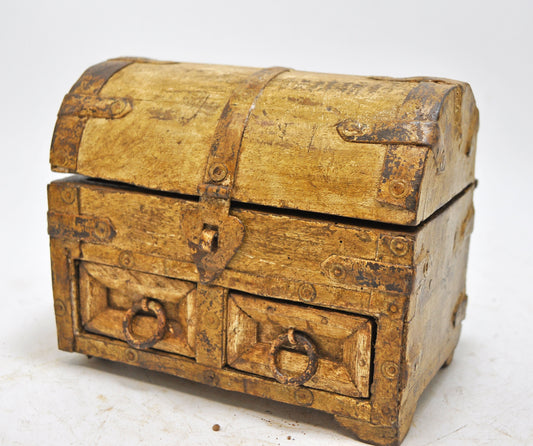 Antique Wooden Storage Chest Box Original Old Hand Crafted Brass Fitted