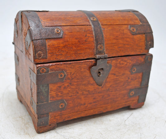 Vintage Wooden Half Round Top Storage Box Original Old Hand Crafted Metal Fitted