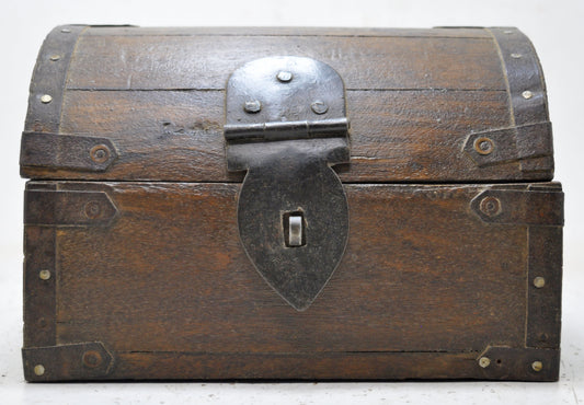 Vintage Wooden Half Round Top Storage Box Original Old Hand Crafted Metal Fitted