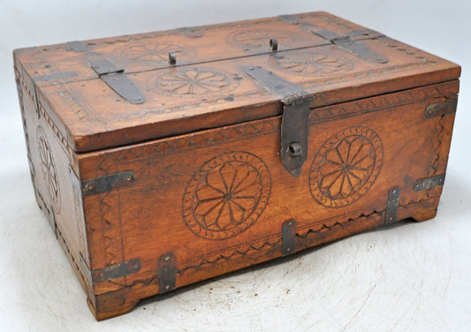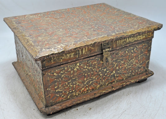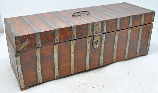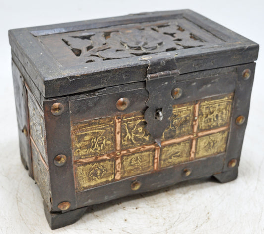 Vintage Wooden Storage Chest Box Original Old Hand Crafted Brass Copper Fitted