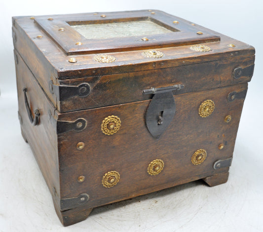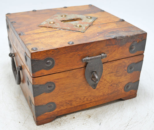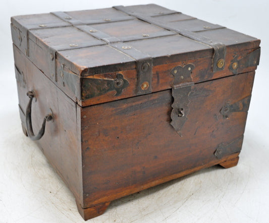 Vintage Wooden Square Storage Chest Box Original Old Hand Crafted Metal Fitted