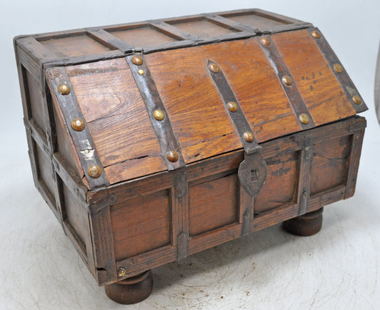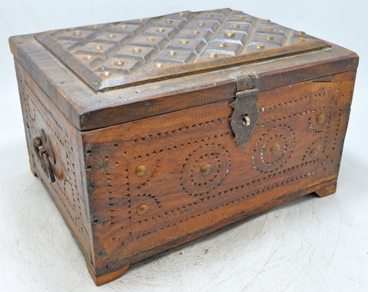 Vintage Wooden Small Storage Box Original Old Hand Crafted Brass Fitted
