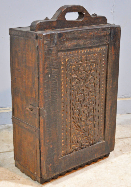 Antique Wooden Storage Chest Box Original Old Hand Crafted Carved Metal Fitted
