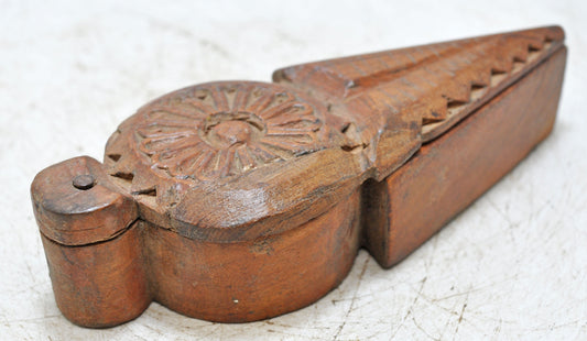 Antique Wooden Kum Kum Powder Tika Box Original Old Hand Carved