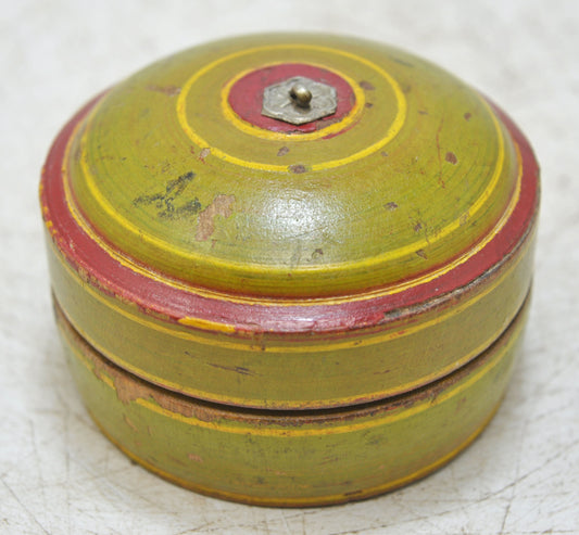 Antique Wooden Lacquer Painted Kum Kum Powder Tika Box Original Old