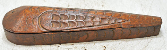 Antique Wooden Fish Shaped Kum Kum Powder Tika Box Original Old Brass Fitted