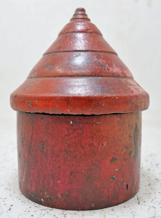 Antique Wooden Kum Kum Powder Tika Box Original Old Hand Crafted Lacquer Painted