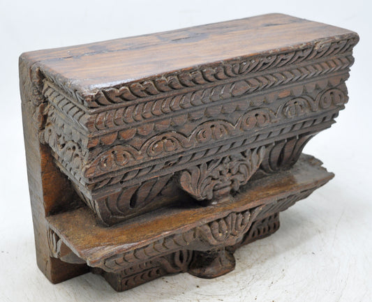Antique Wooden Pillar Base Wall Décor Shelf Original Old Fine Hand Carved