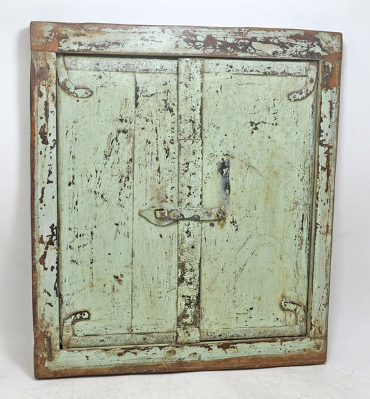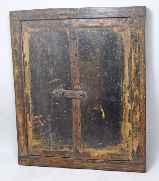 Antique Wooden Wall Décor Window Panel With Frame Original Old Rustic Painted