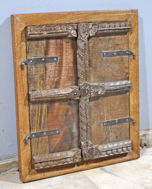 Antique Wooden Wall Décor Window Panels Frame Original Old Brass Fitted
