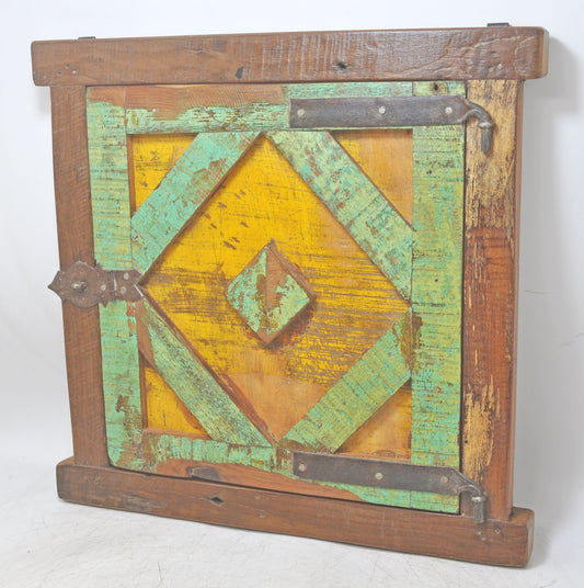 Antique Wooden Wall Décor Window Panel Frame Original Old Hand Crafted Painted