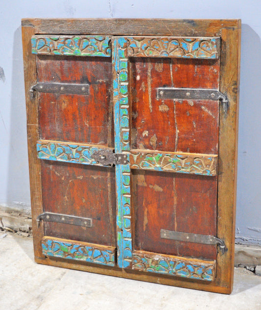 Antique Wooden Wall Décor Small Window Original Old Hand Crafted New Painted