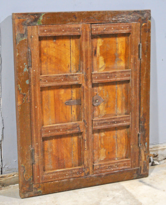 Antique Wooden Wall Décor Window Panels With Frame Original Old Hand Crafted