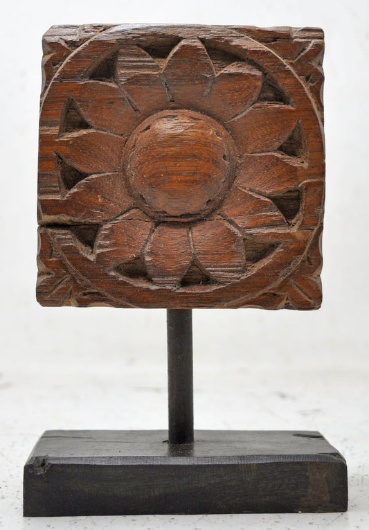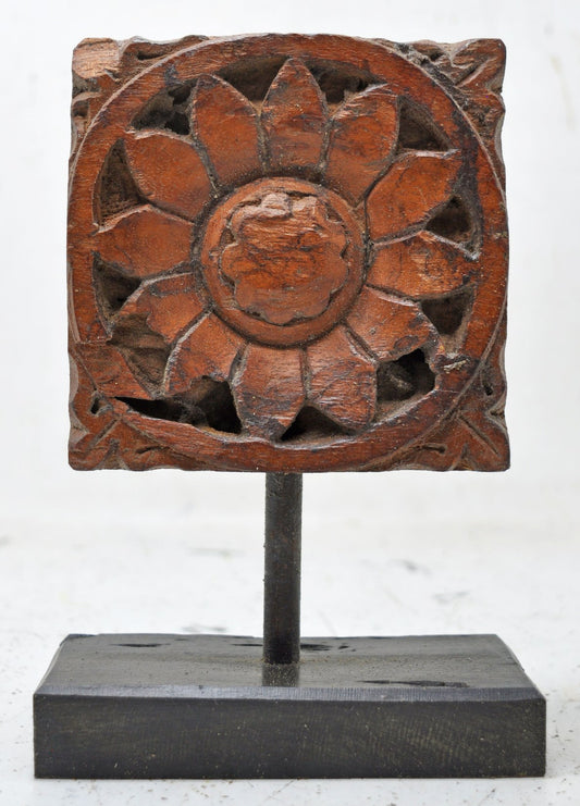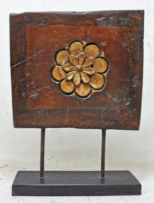 Antique Wooden Flower Carving Panel Plaque Original Old Hand Carved