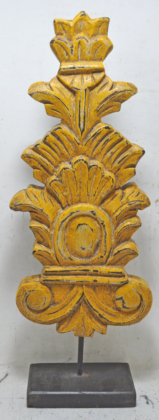 Hand Carved Wooden Decorative Floral Carving Panel Plaque Rustic Yellow Painted