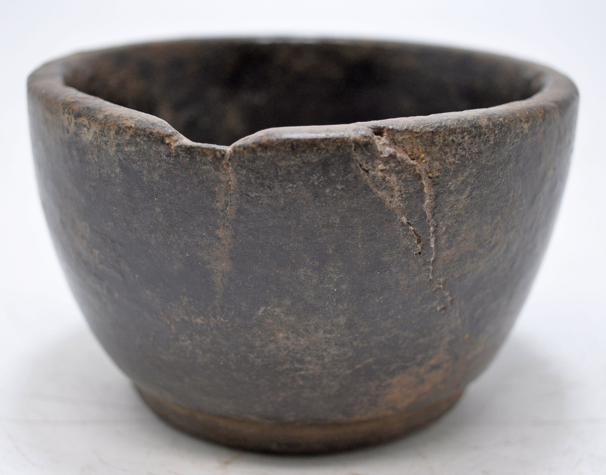 Antique Black Stone Small Round Bowl Original Old Hand Carved