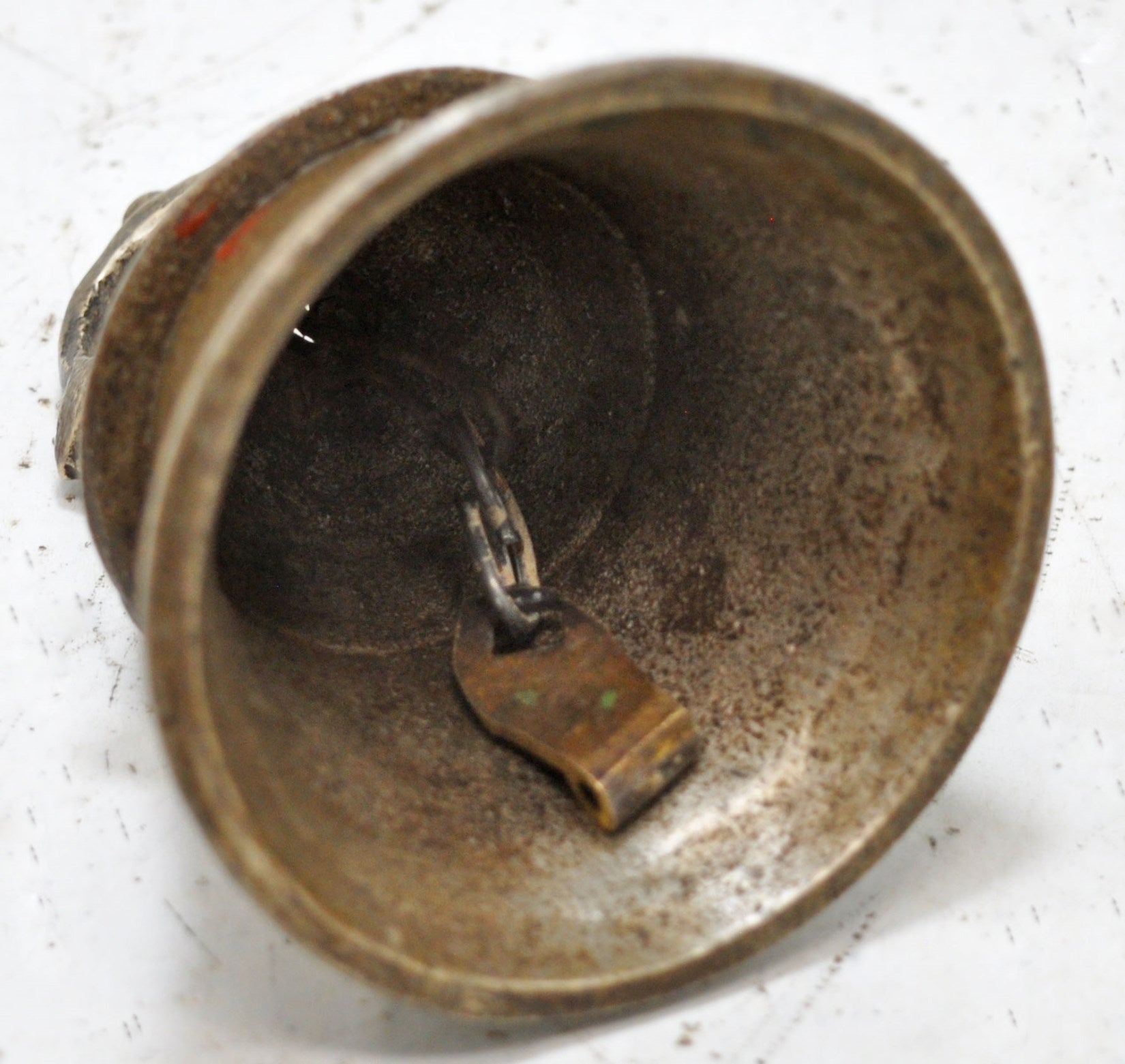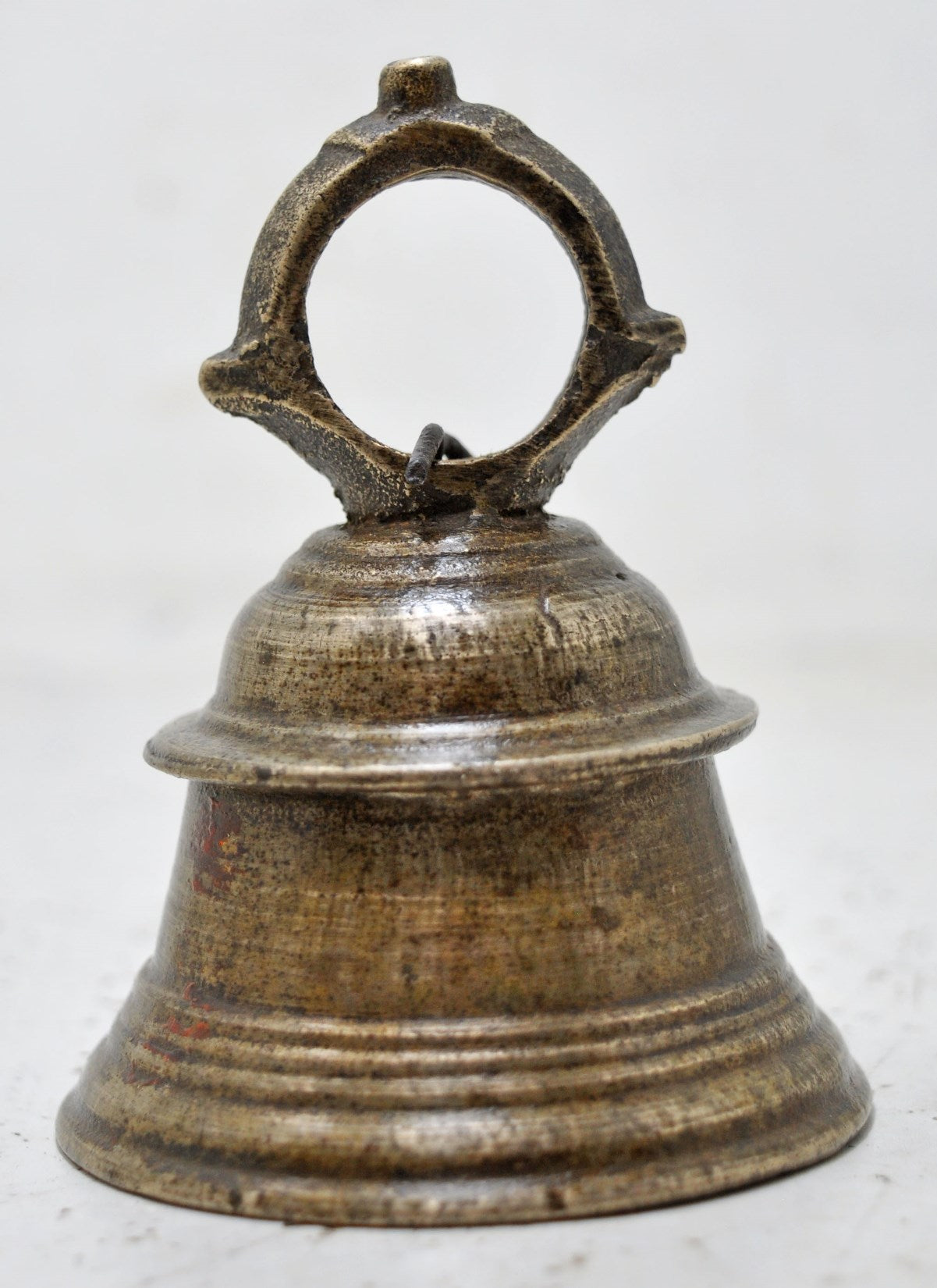A nice looking old brass bell originally used to be worn on farm animals like cows or sheep. Hand crafted in a nice shape. Good condition and a rich patina. Origin India.