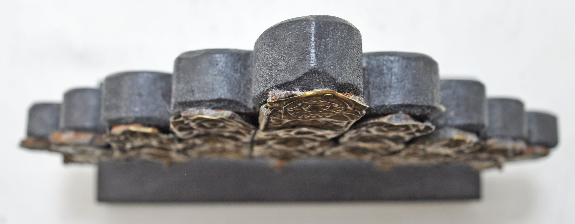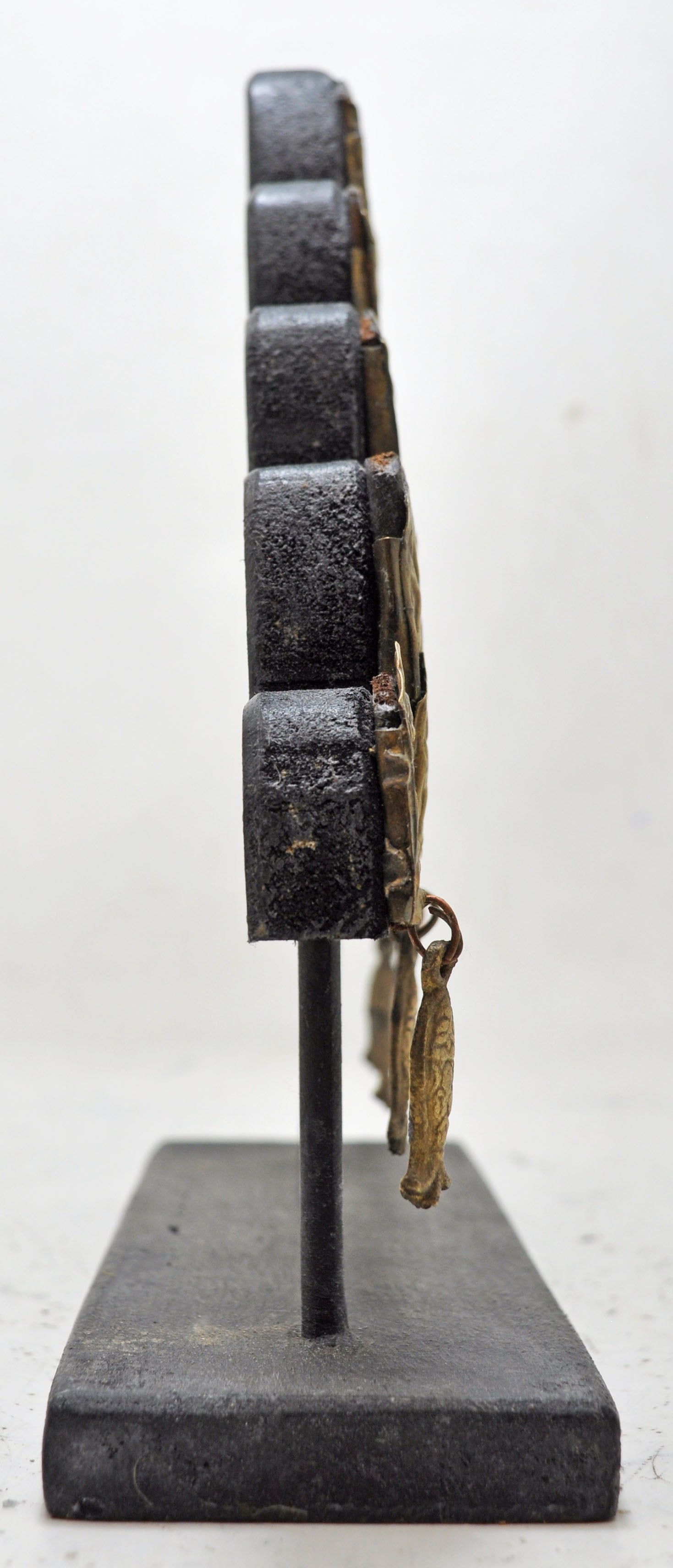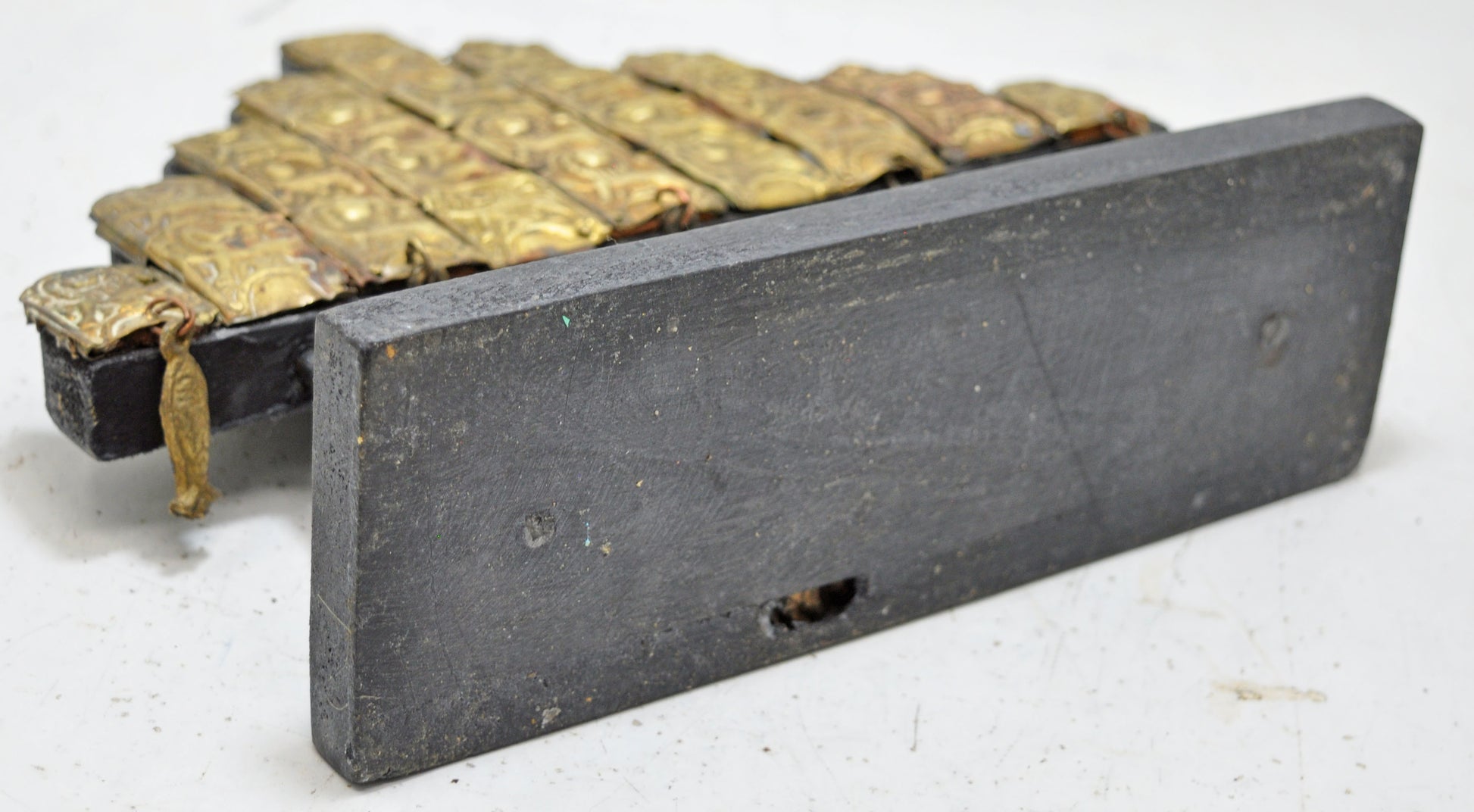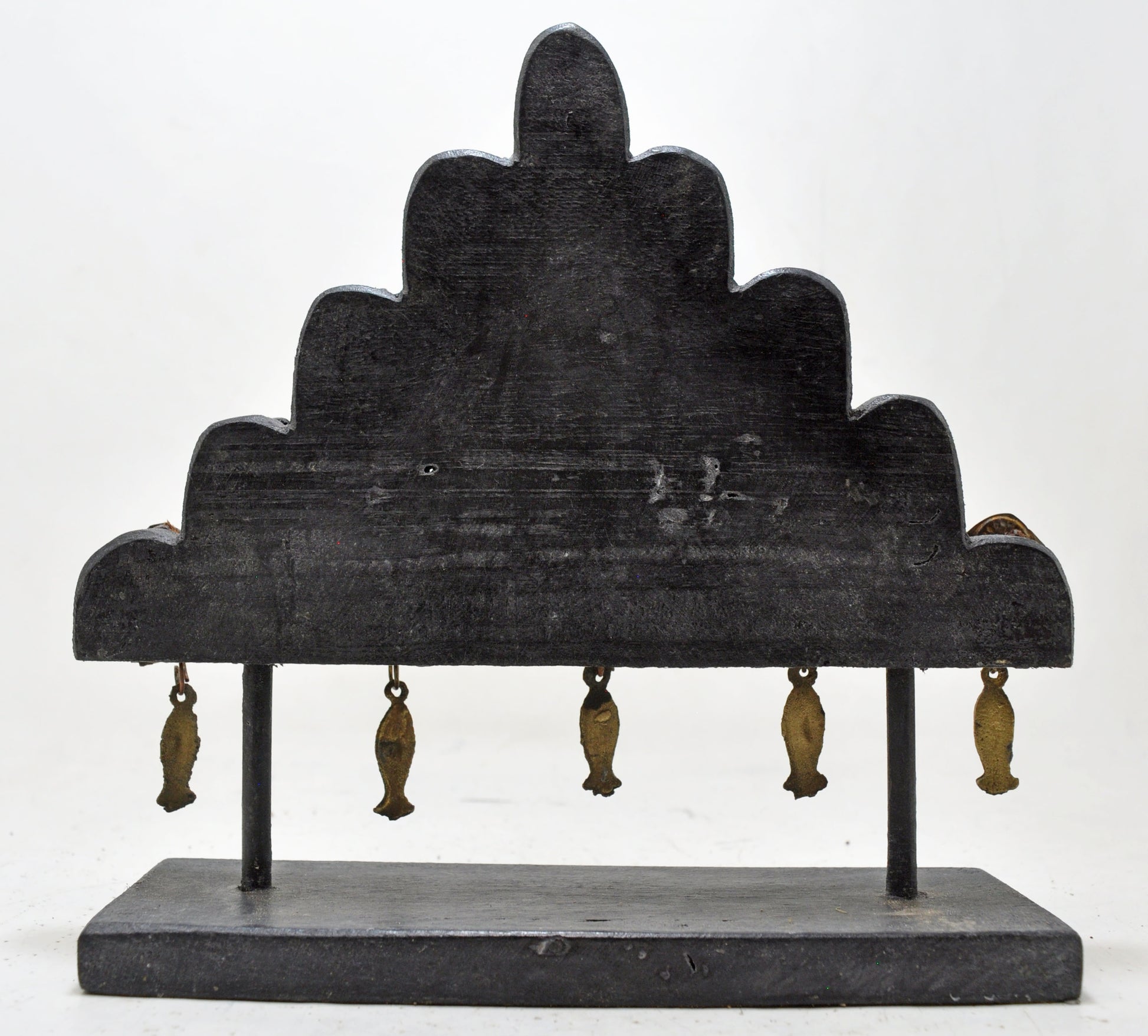A beautiful old brass panel originally used as jewellery on wedding horses. Very fine quality piece with heavy embossing. Crafted with a wooden panel and stand to make as a decorative piece. Good condition and a rich patina. Origin India.