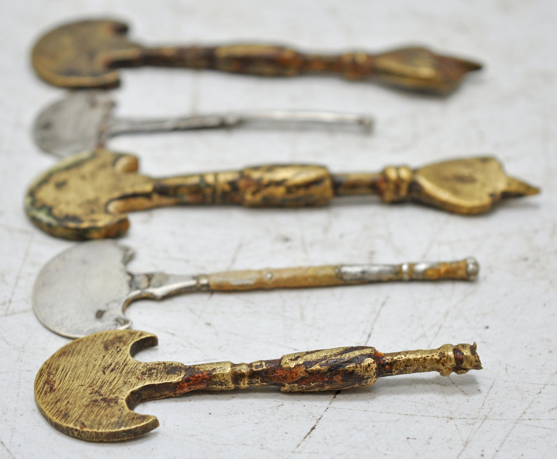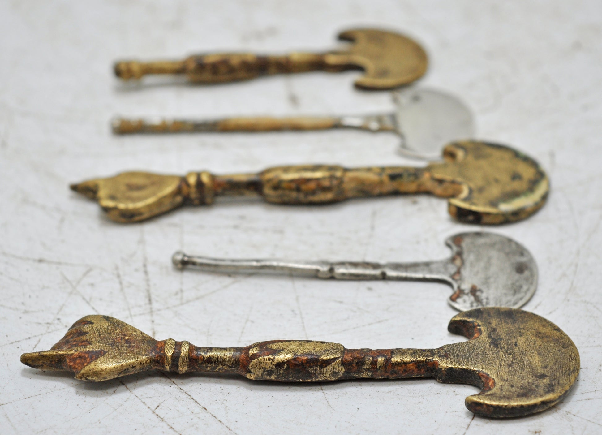 Antique Brass Lot of 5 Betel Paan Making Fllat Spoons Hand Crafted Engraved