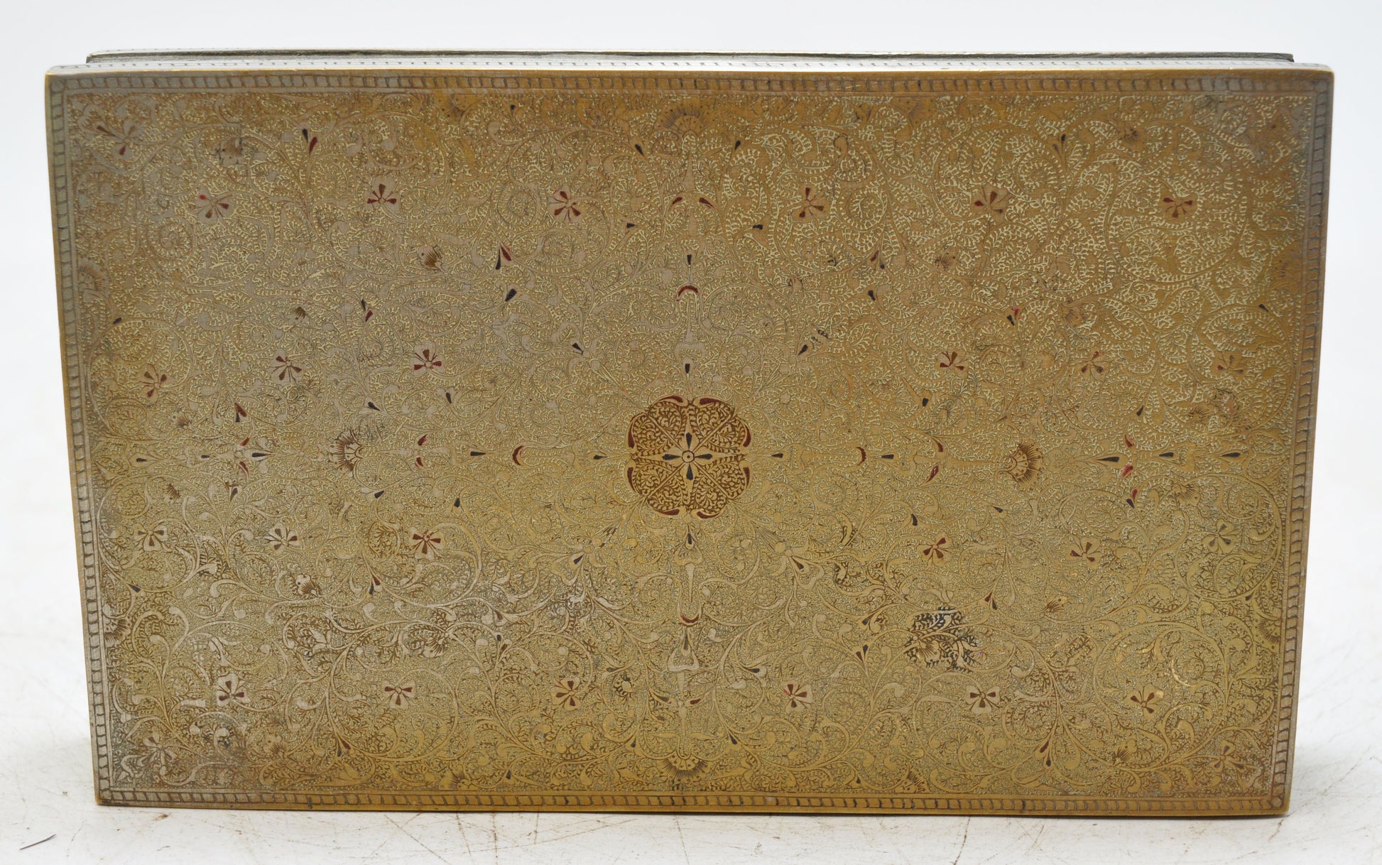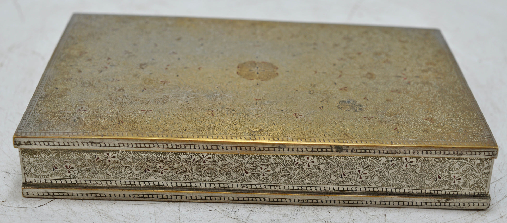 Antique Brass Small Storage Box Original Old Fine Engraved Inlay Painted