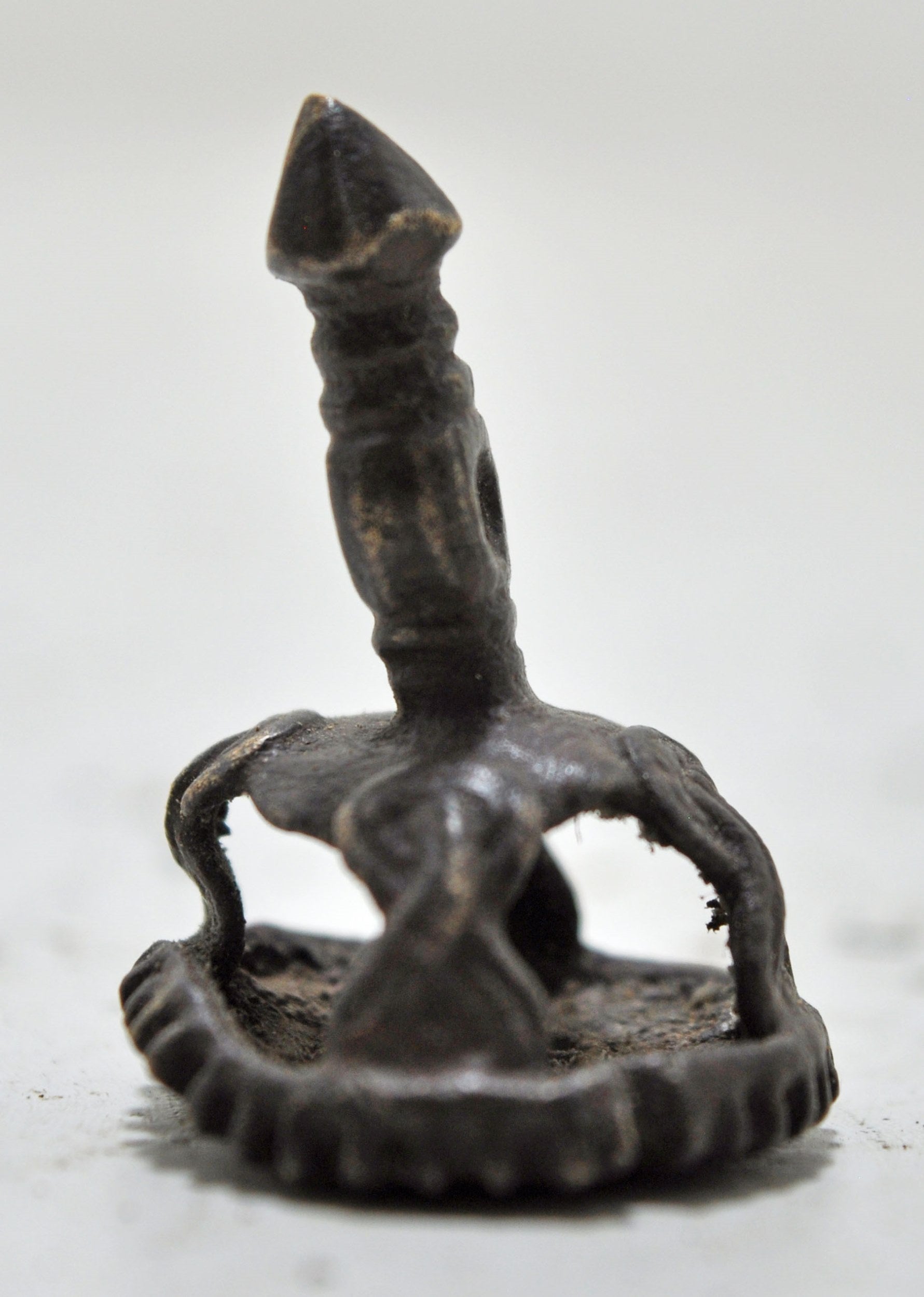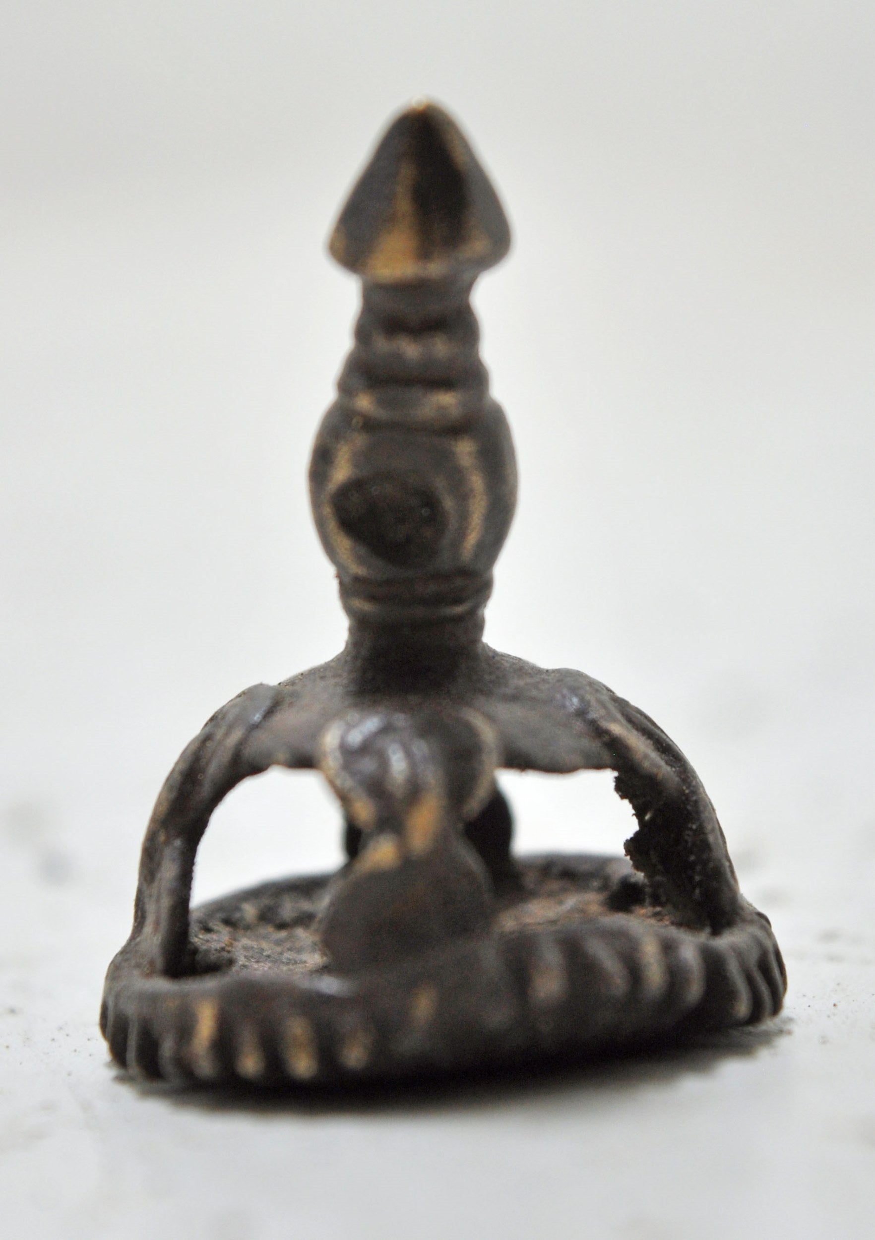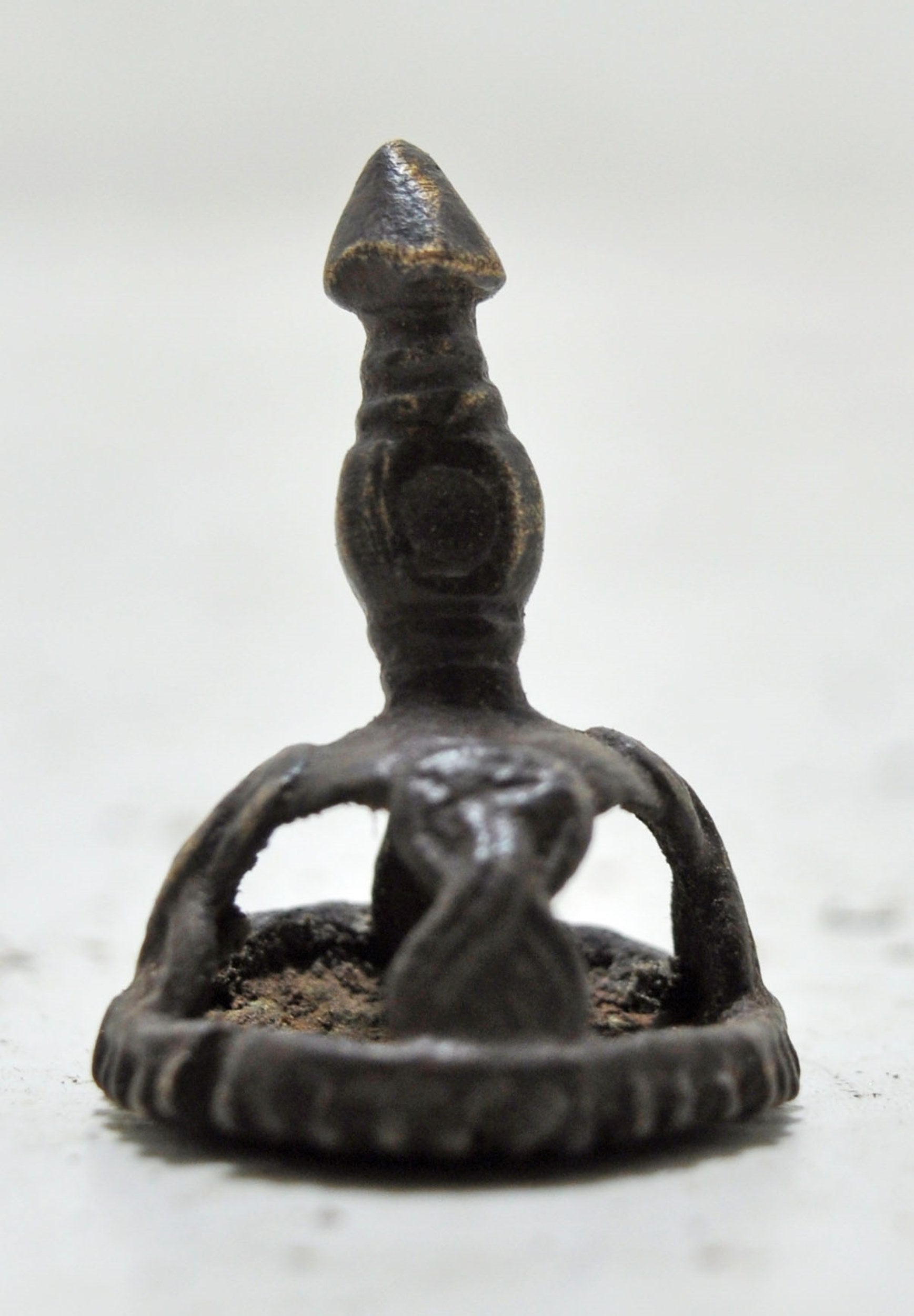 A nice looking old brass small stamping seal. Hand crafted in a nice shape and finely engraved. Good condition and a rich patina. Origin India.