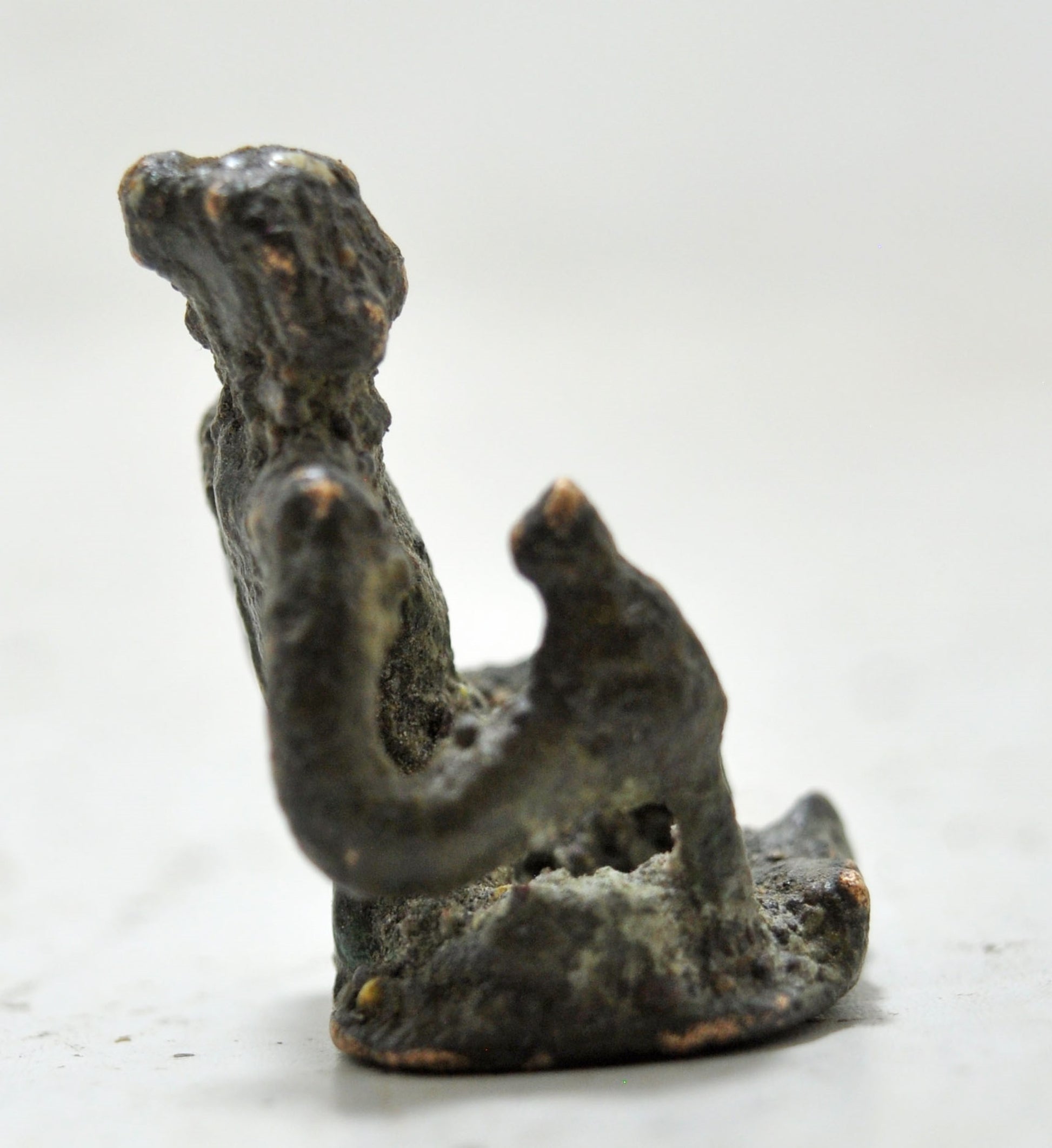 A nice looking old brass small tribal god figurine. Hand crafted in a nice shape and finely engraved. Good condition and a rich patina. Origin India.