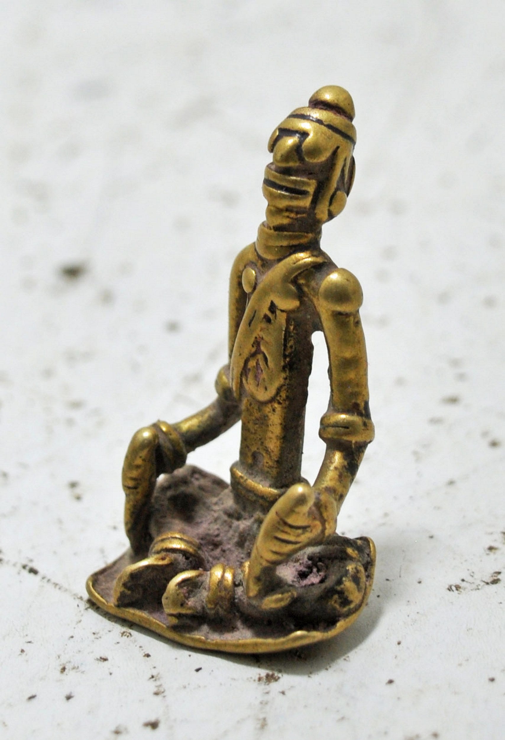 A nice looking old brass small tribal god figurine. Hand crafted in a nice shape and finely engraved. Good condition and a rich patina. Origin India.