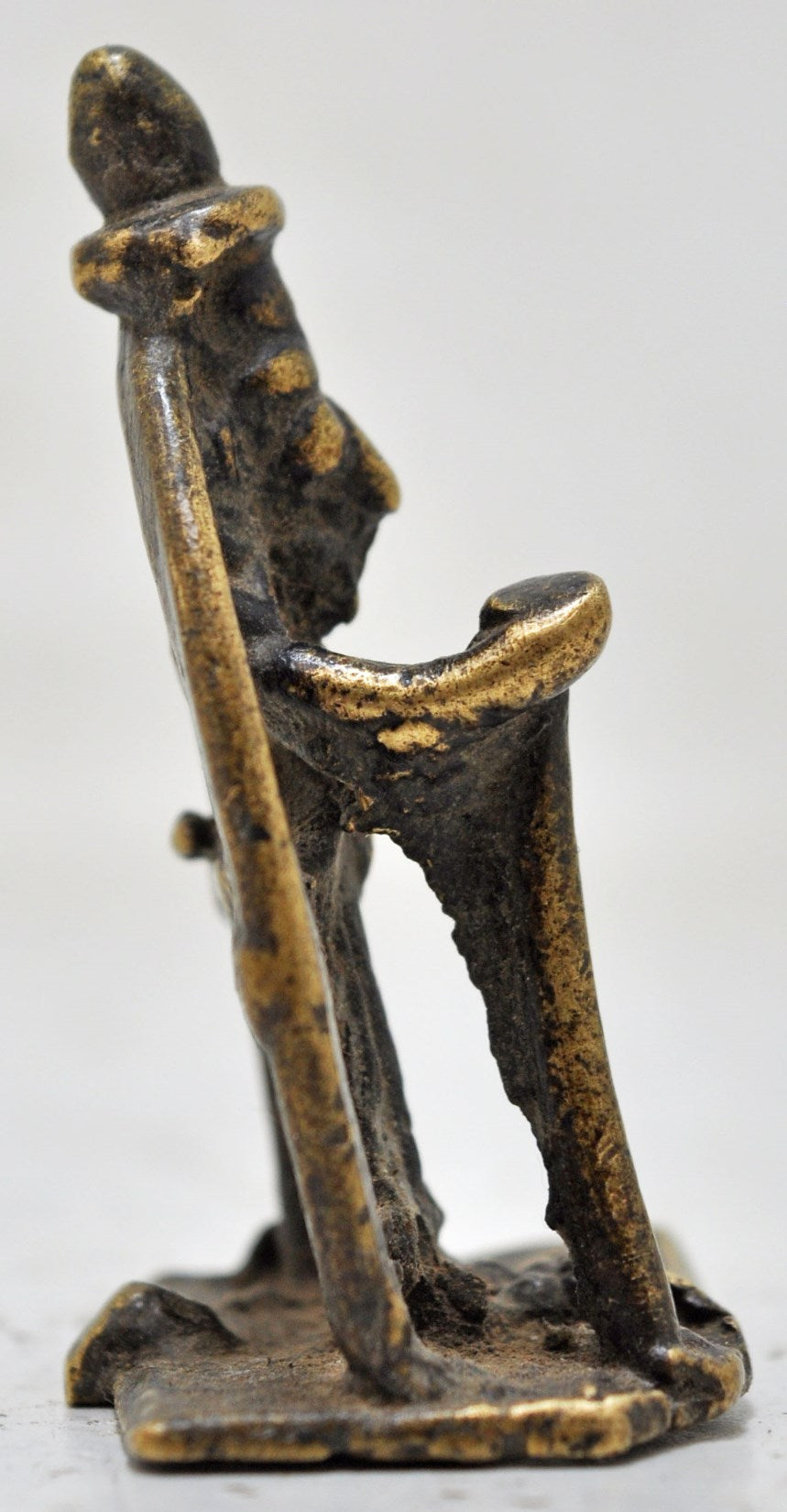 A nice looking old brass tribal god idol. Hand crafted in a nice shape and engraved. Good condition and a rich patina. Origin India.