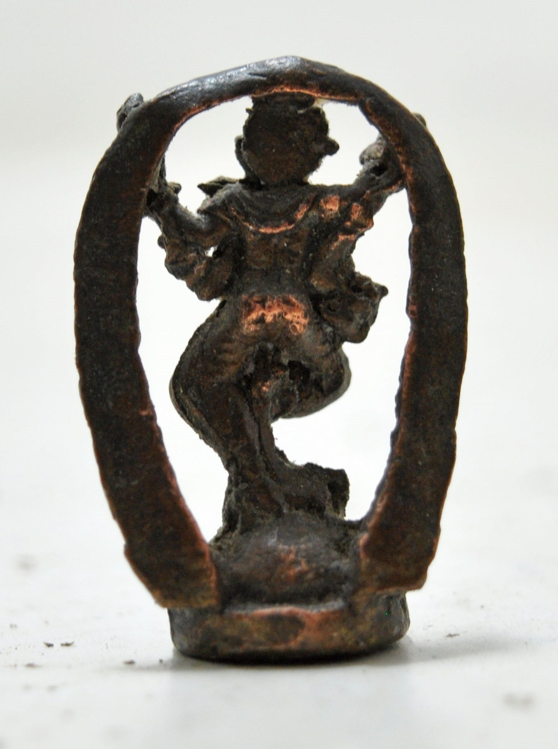 A nice looking old copper very small idol of Hindu god Ganesha. Hand crafted in a nice shape and finely engraved. Good condition and a rich patina. Origin India.