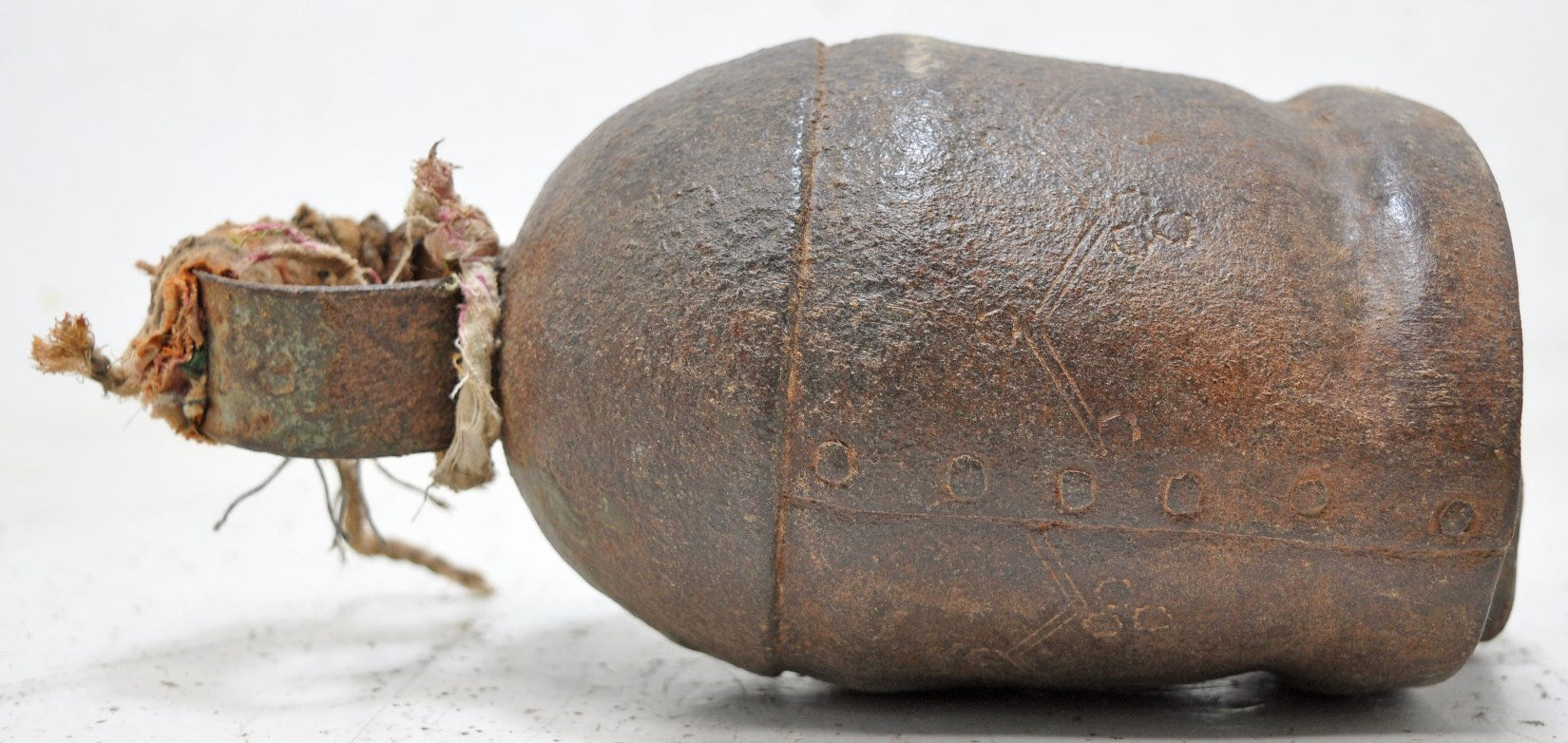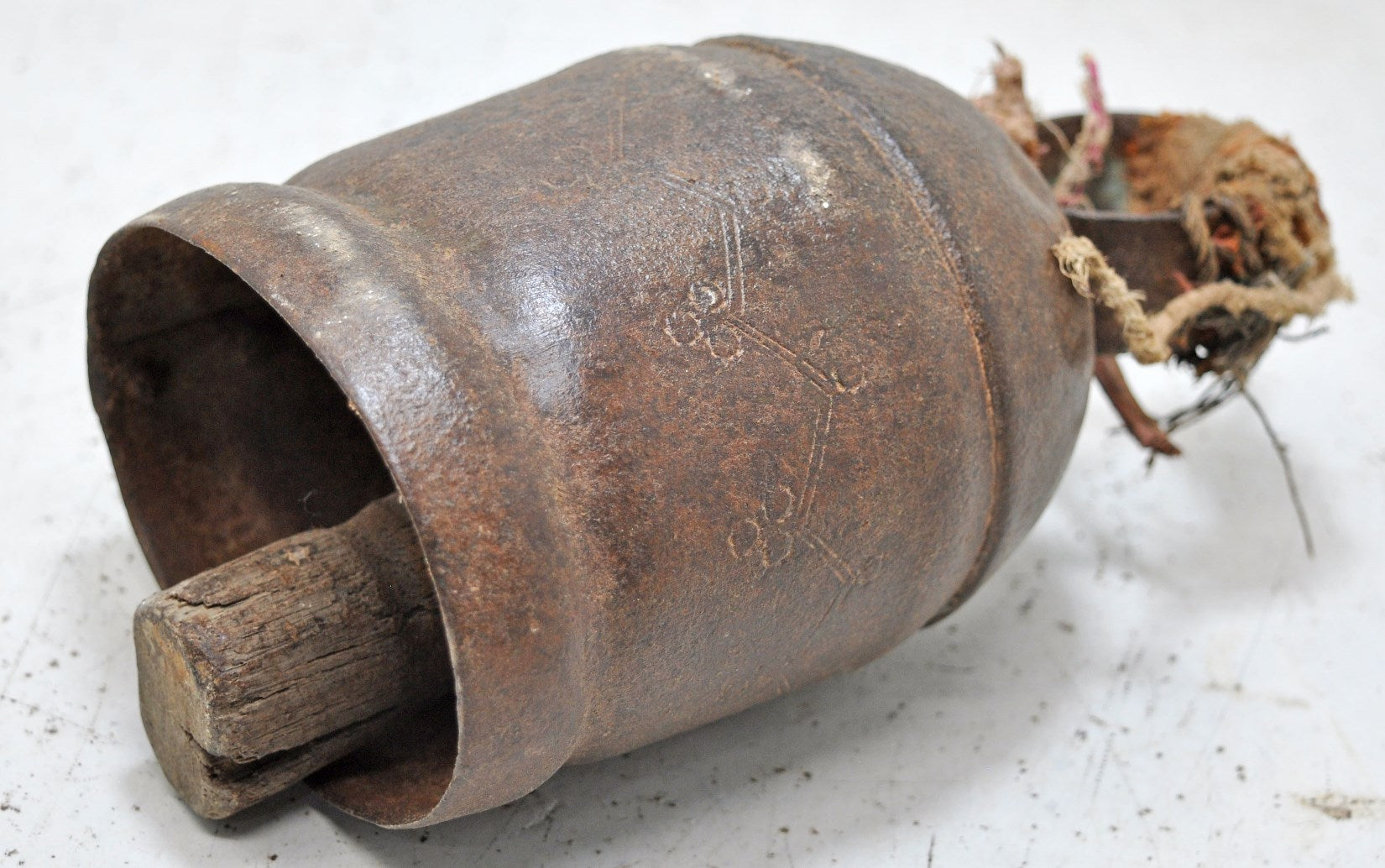 A nice looking old iron bell originally used for hanging on farm animals like cows or sheep. Hand crafted in a nice shape. Good condition and a rich patina. Origin India.