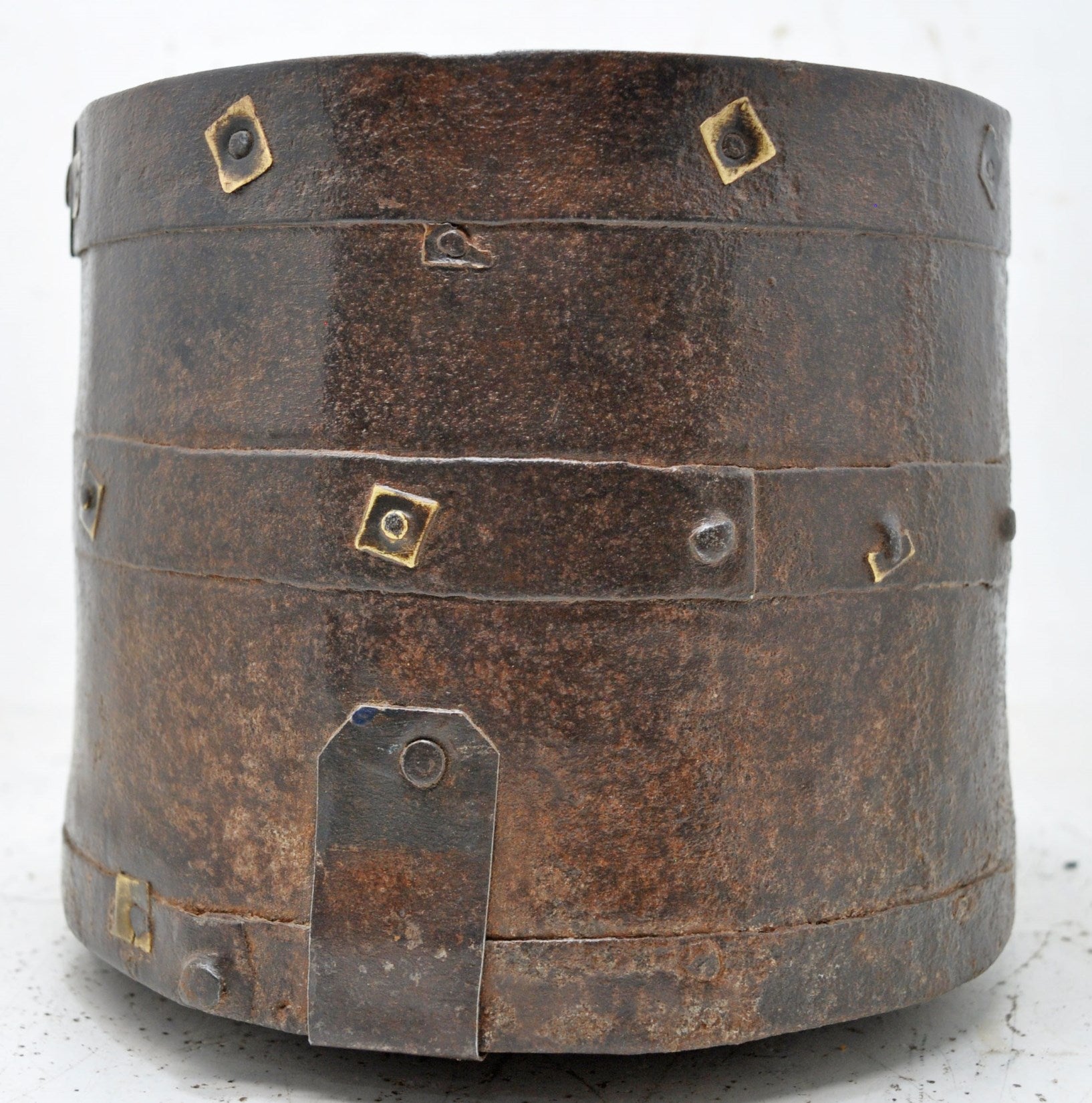 A nice looking old iron round pot called Mana, originally used for measuring grains. Hand crafted in a nice shape. Good condition and a rich patina. Origin India.
