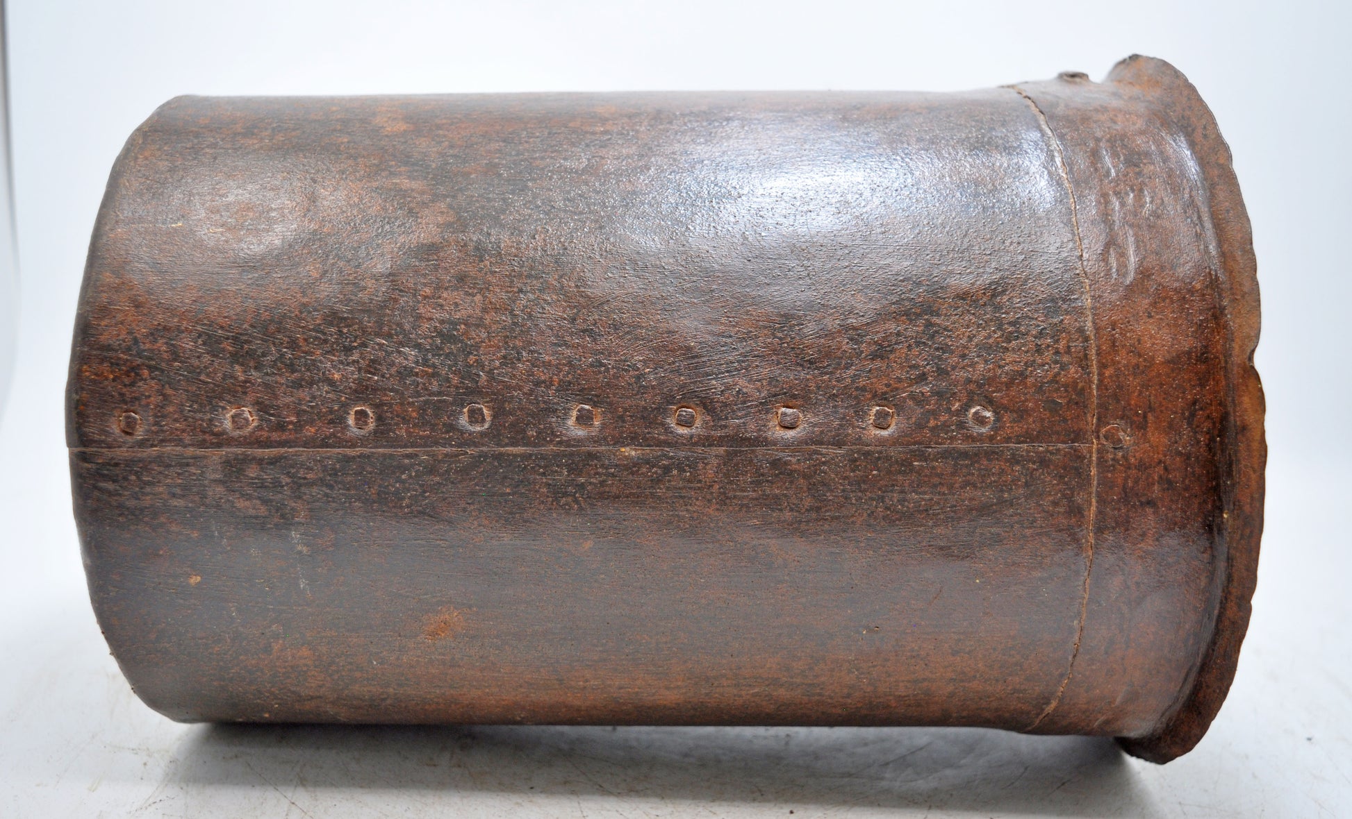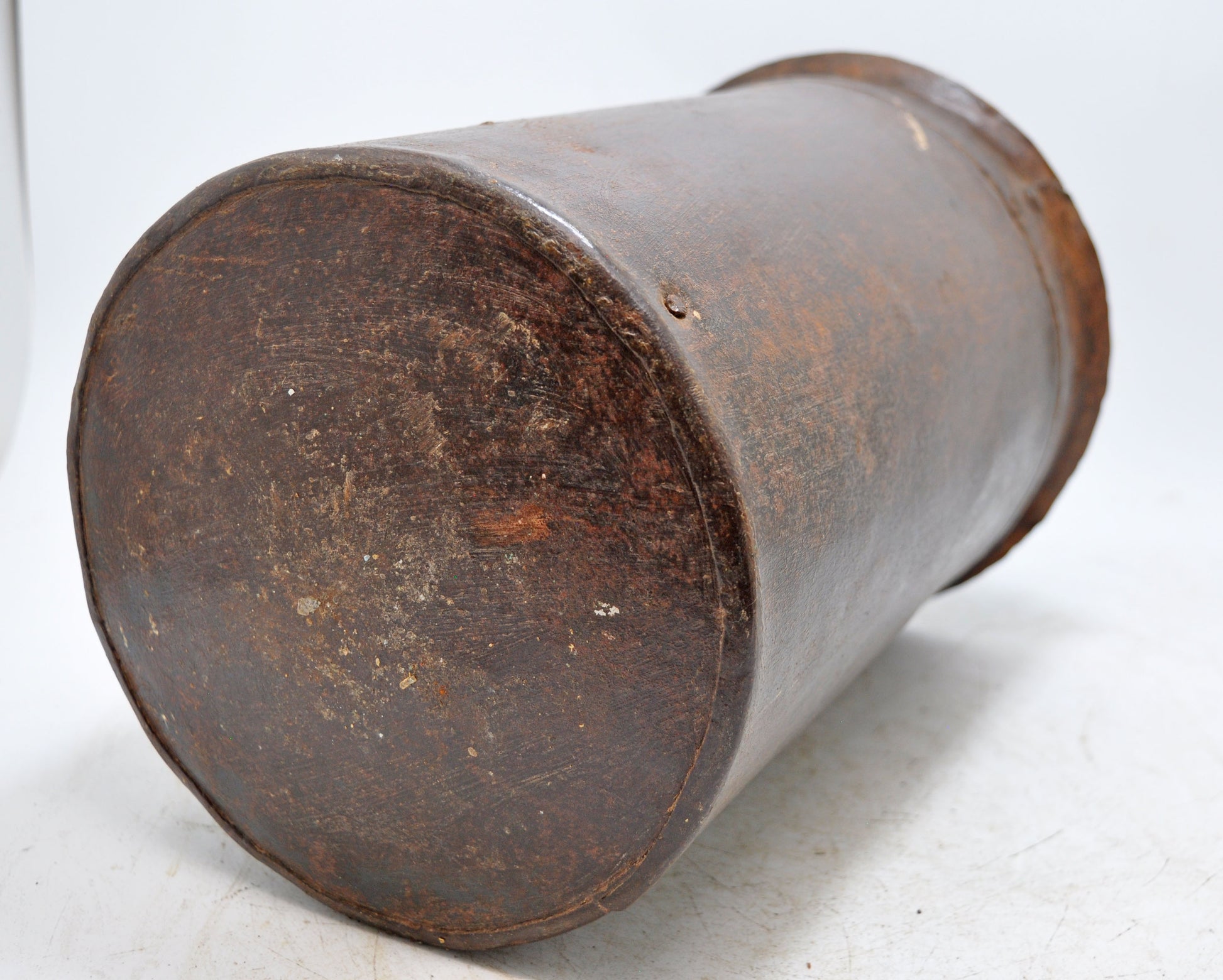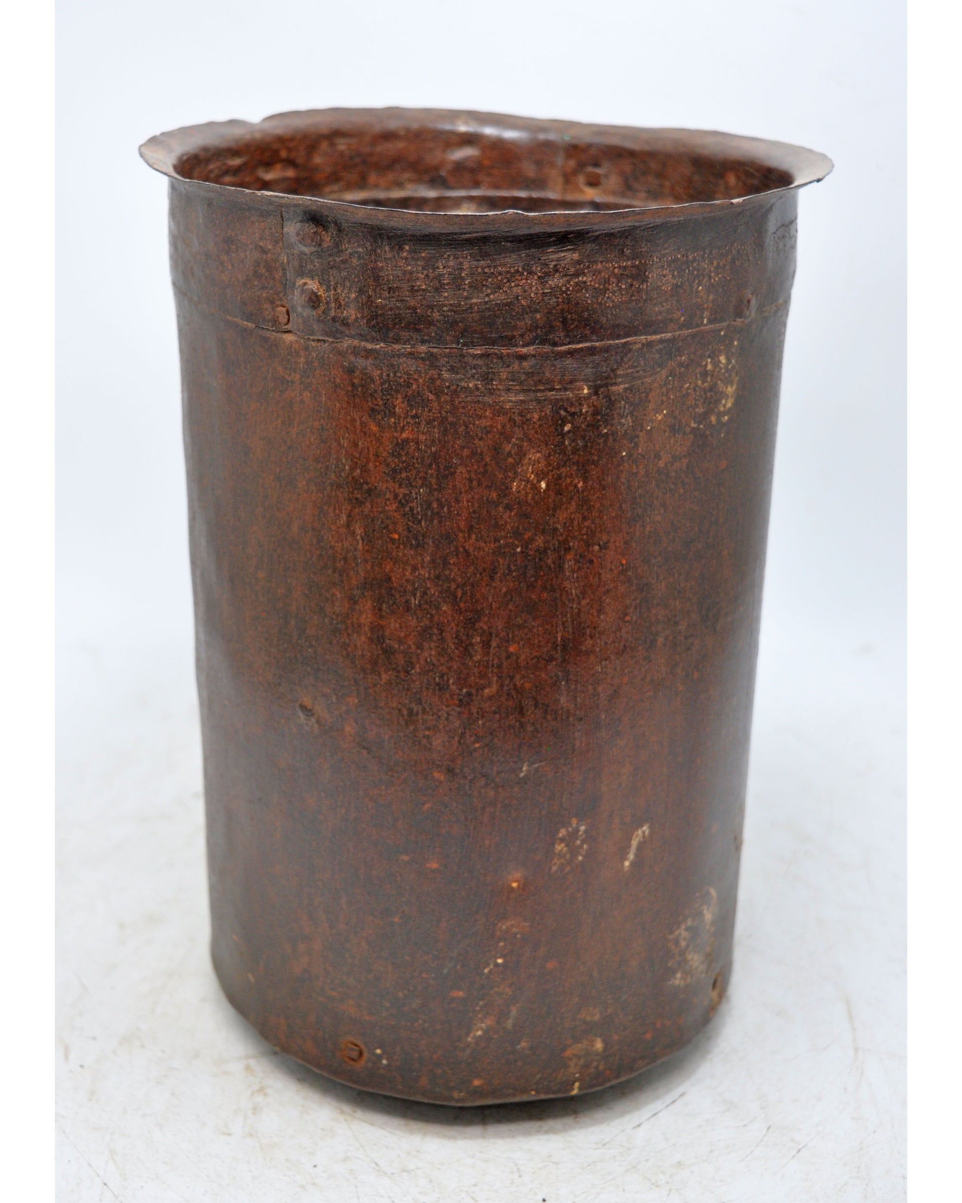 A nice looking old iron round pot originally used for measuring grains. Hand crafted in a nice shape. Good condition and a rich patina. Origin India.