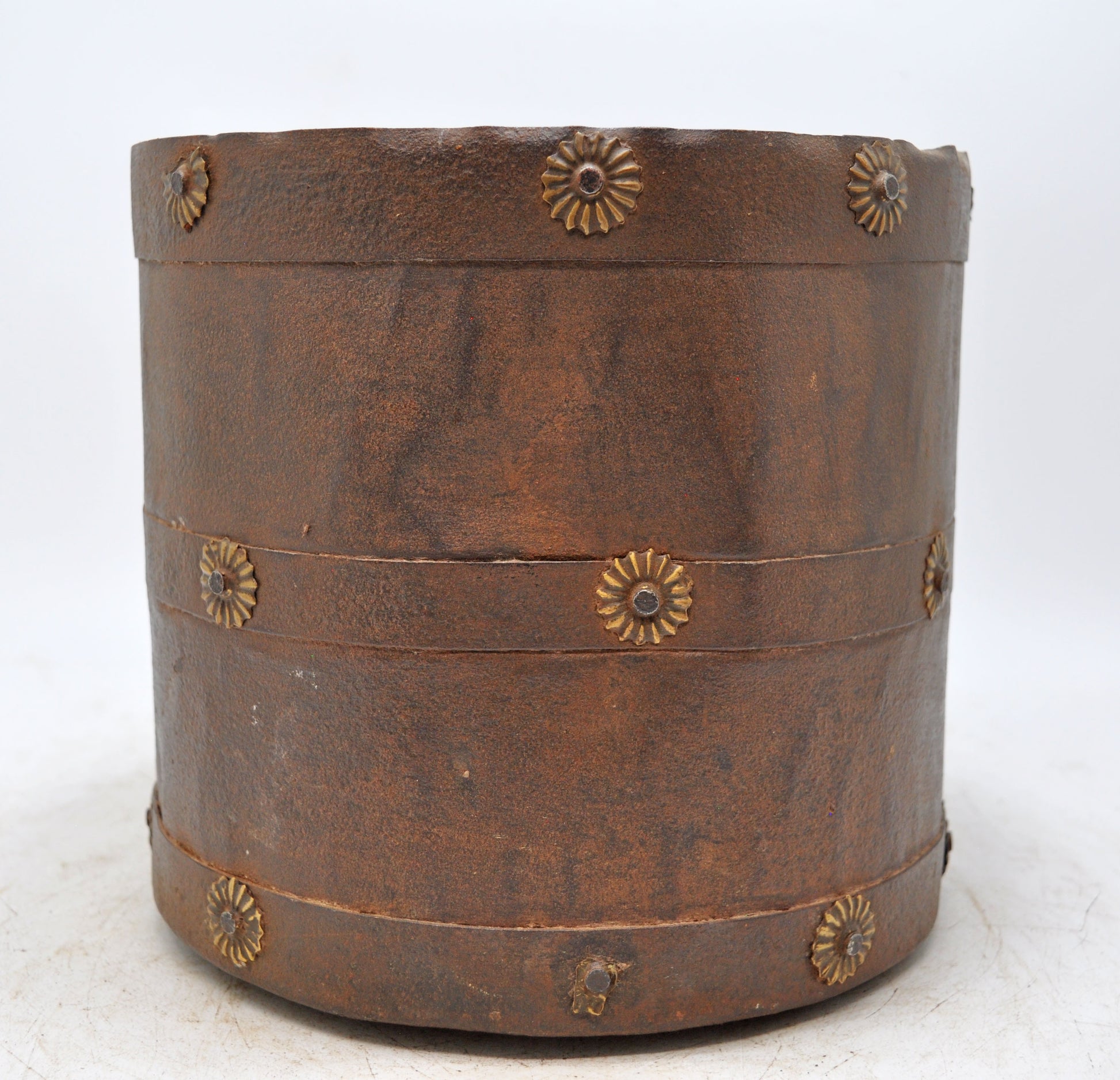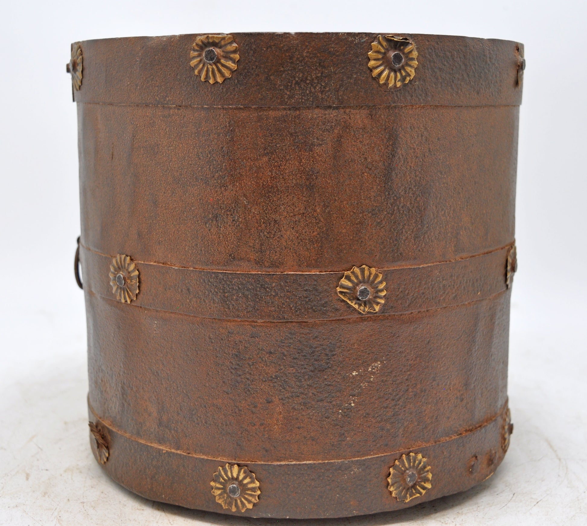 A nice looking old iron round pot originally used for measuring grains. Hand crafted in a nice shape. Good condition and a rich patina. Origin India.