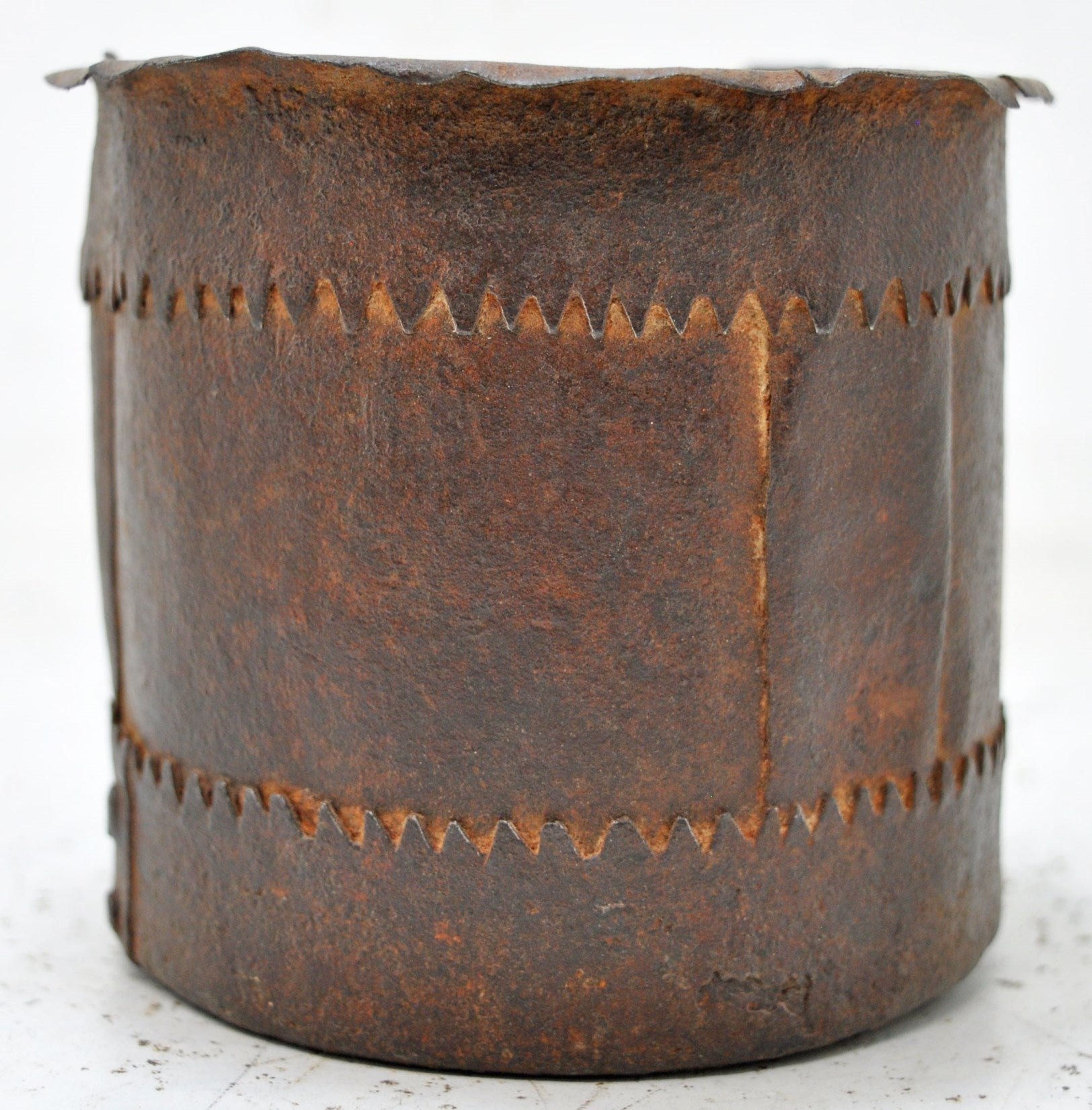 A nice looking old iron round pot called Paili, originally used for measuring grains. Hand crafted in a nice shape. Good condition and a rich patina. Origin India.