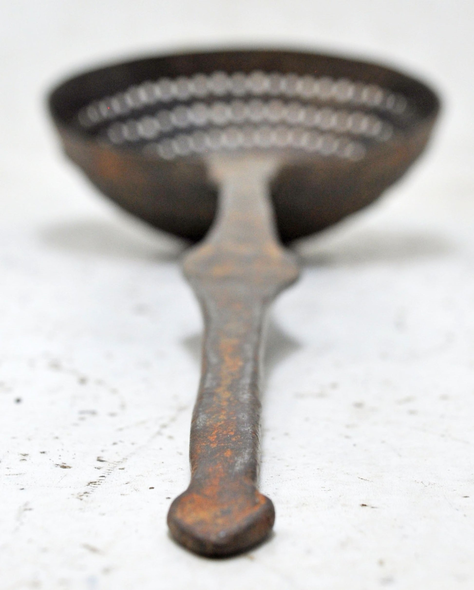 Antique Iron Kitchenware Frying Spoon Original Old Hand Crafted Engraved