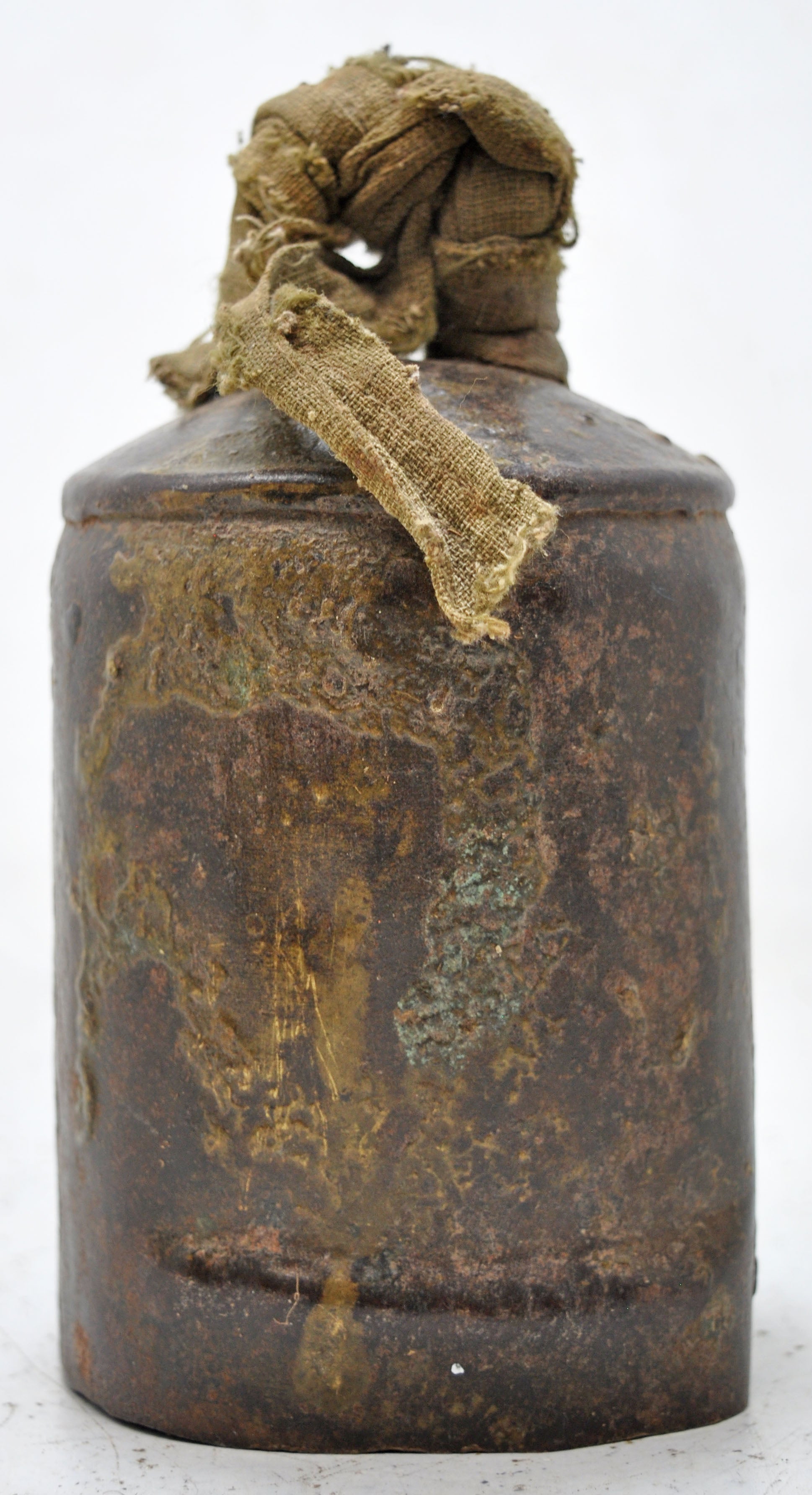 A nice looking old iron bell originally used for tying on animals' necks by shepherds. Hand crafted in a nice shape. Good condition and a rich patina. Origin India.