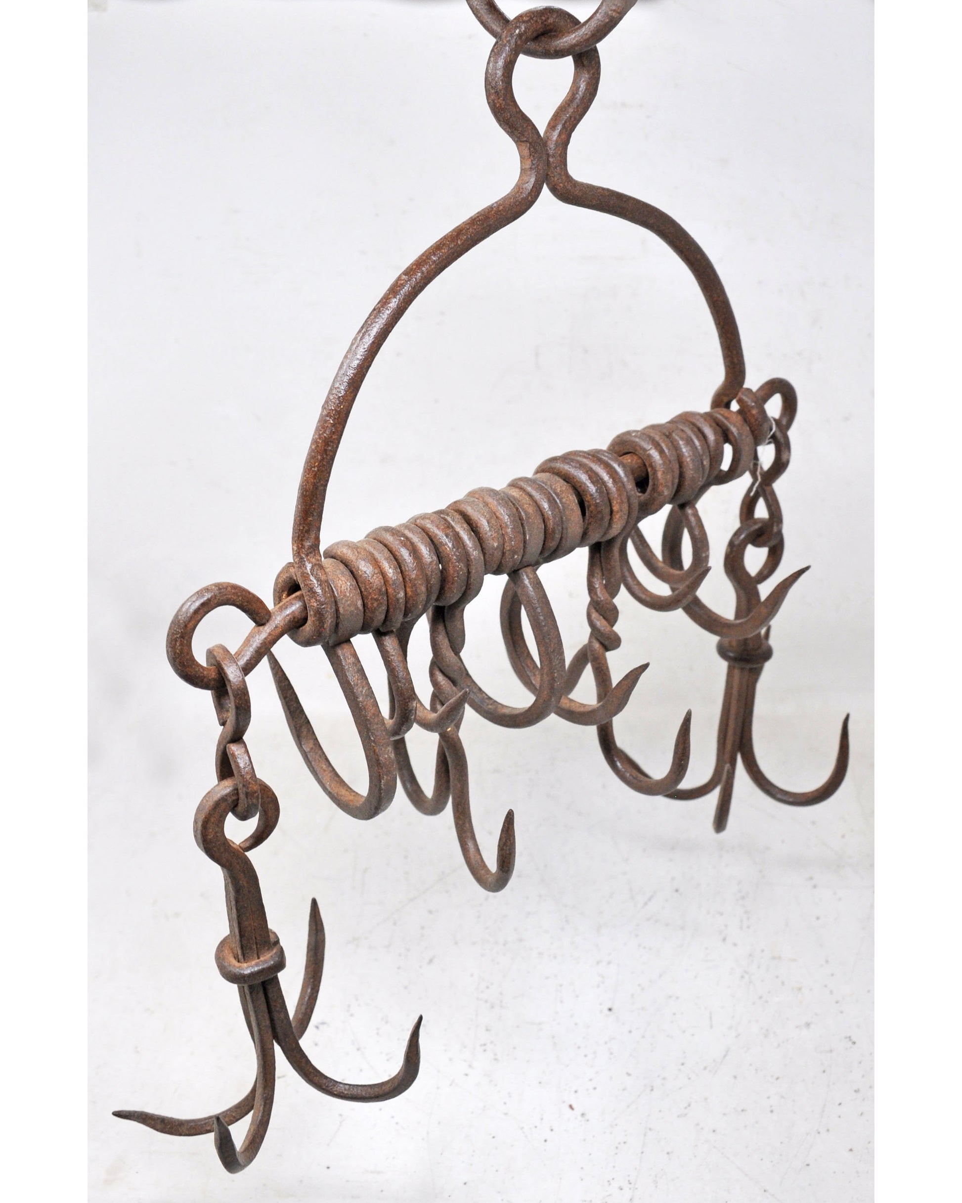 A beautiful set of old iron hooks originally used for fetching water buckets from wells. Hand crafted piece in a very unique design.Good condition and a rich patina. Origin India.