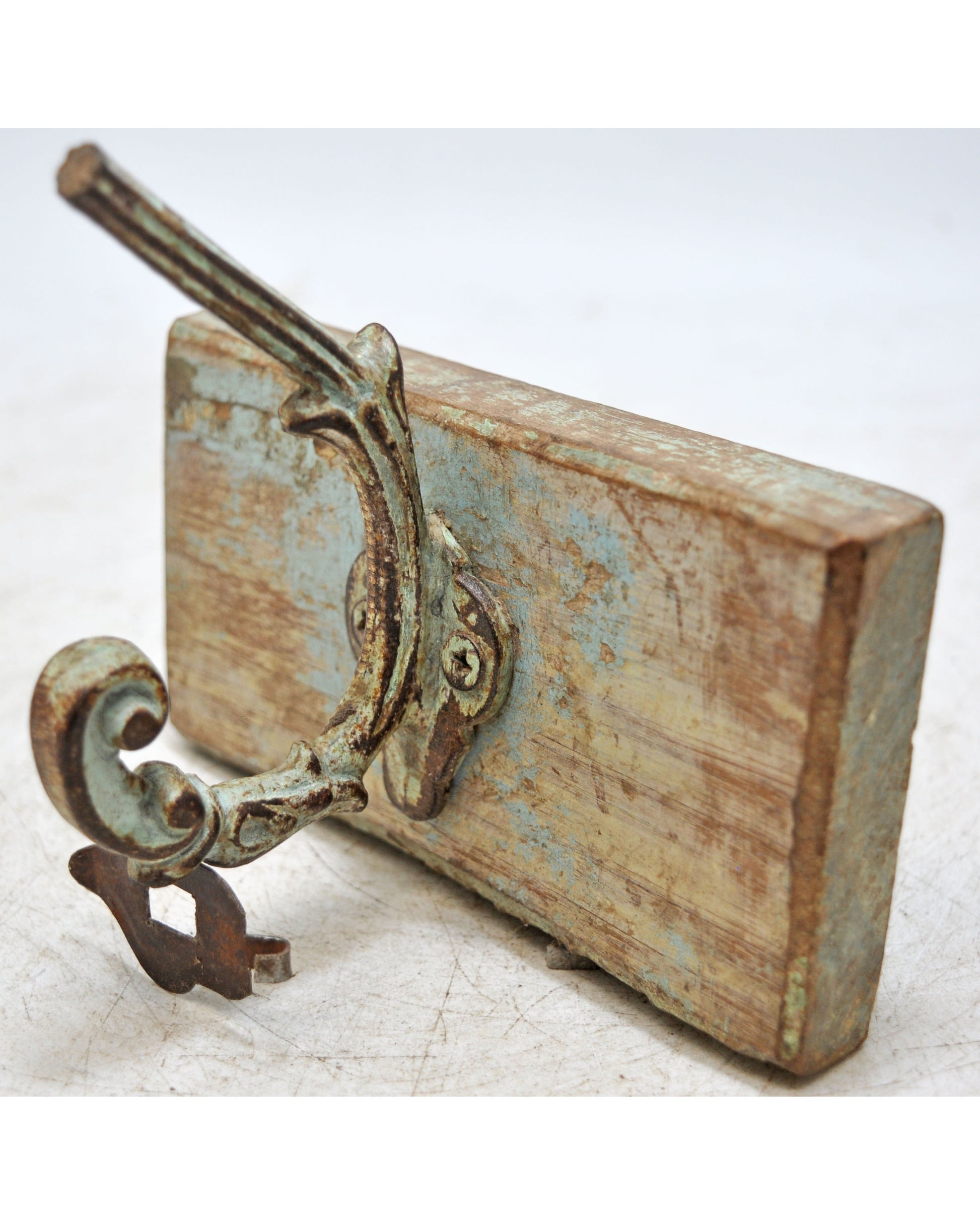 Antique Iron Wooden Wall Hanging 1 Hook Hanger Original Old Hand Crafted