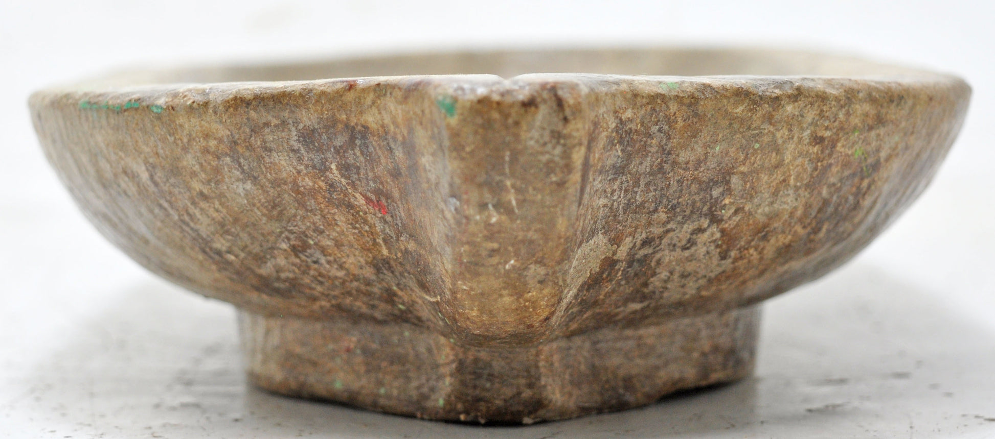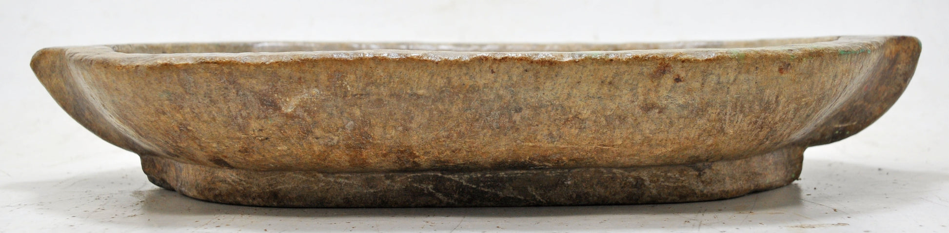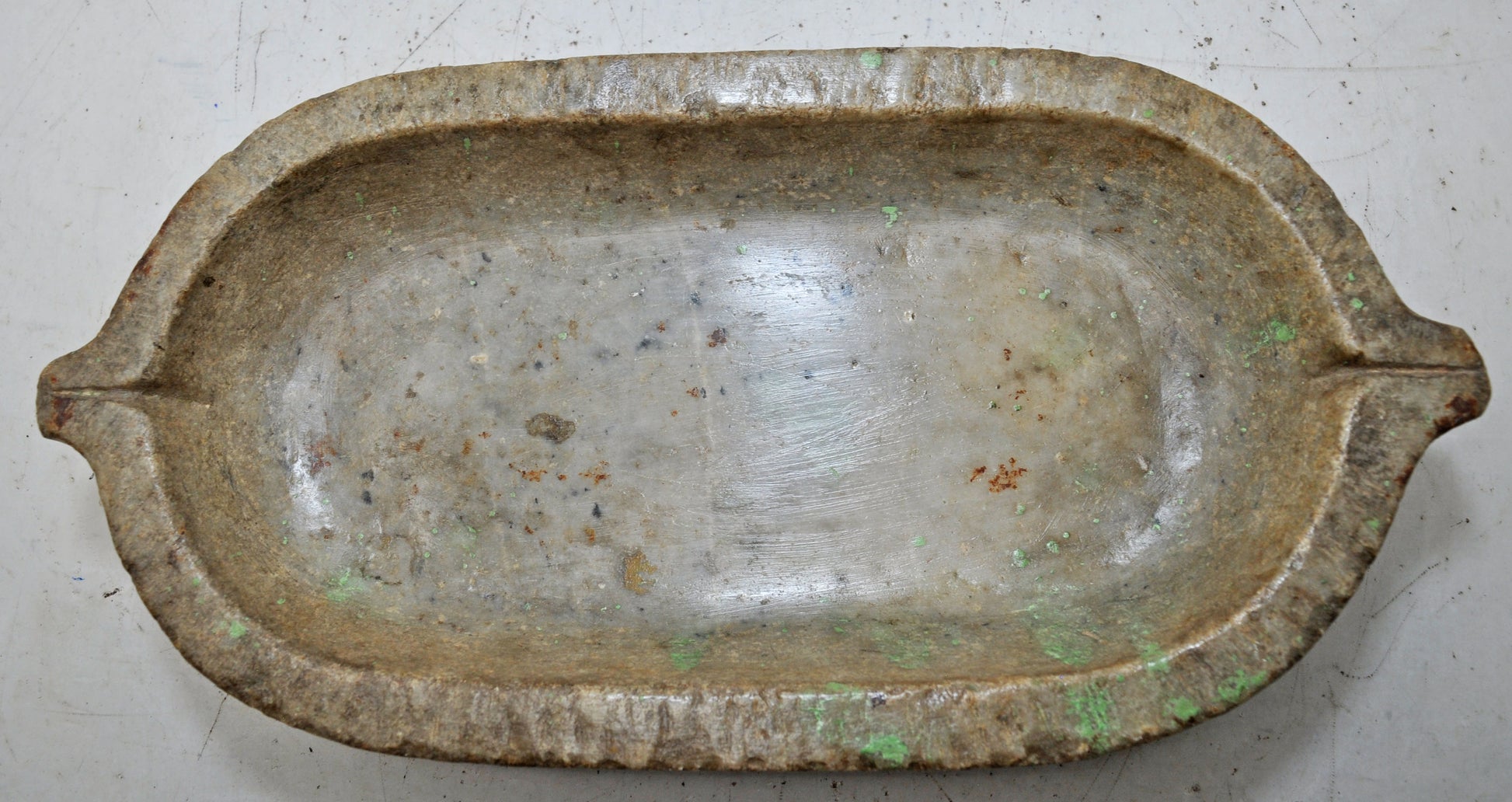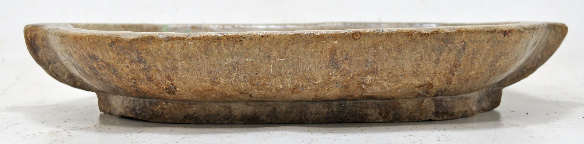 Antique Sand Stone Oval Kharal Bowl Original Old Hand Carved
