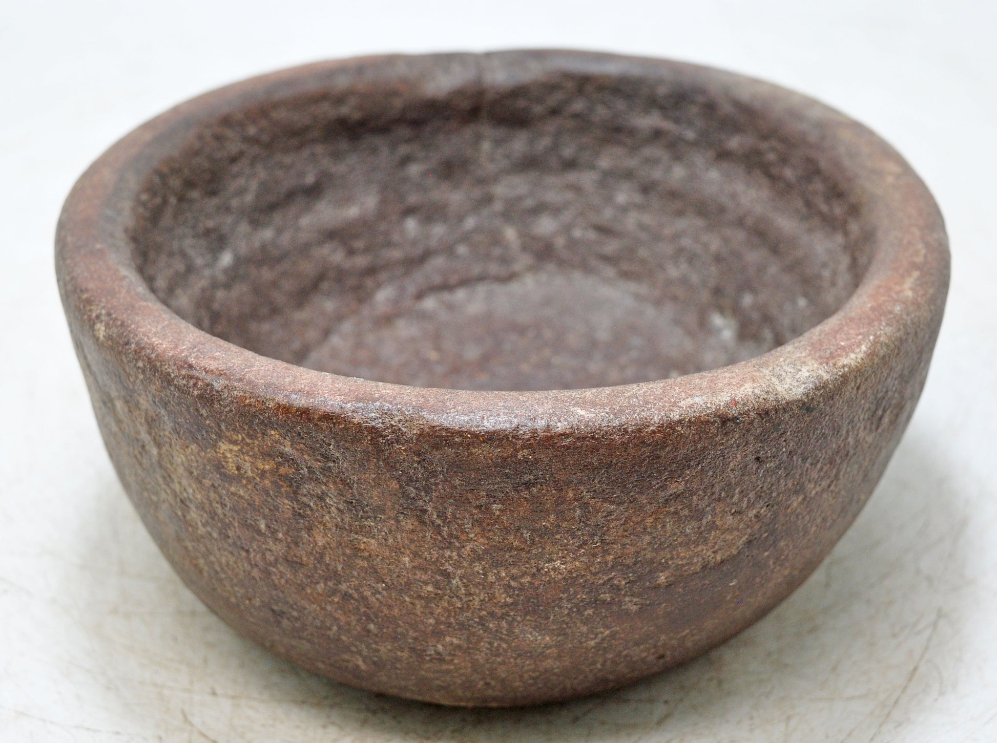 Antique Sand Stone Round Curry Bowl Original Old Hand Carved