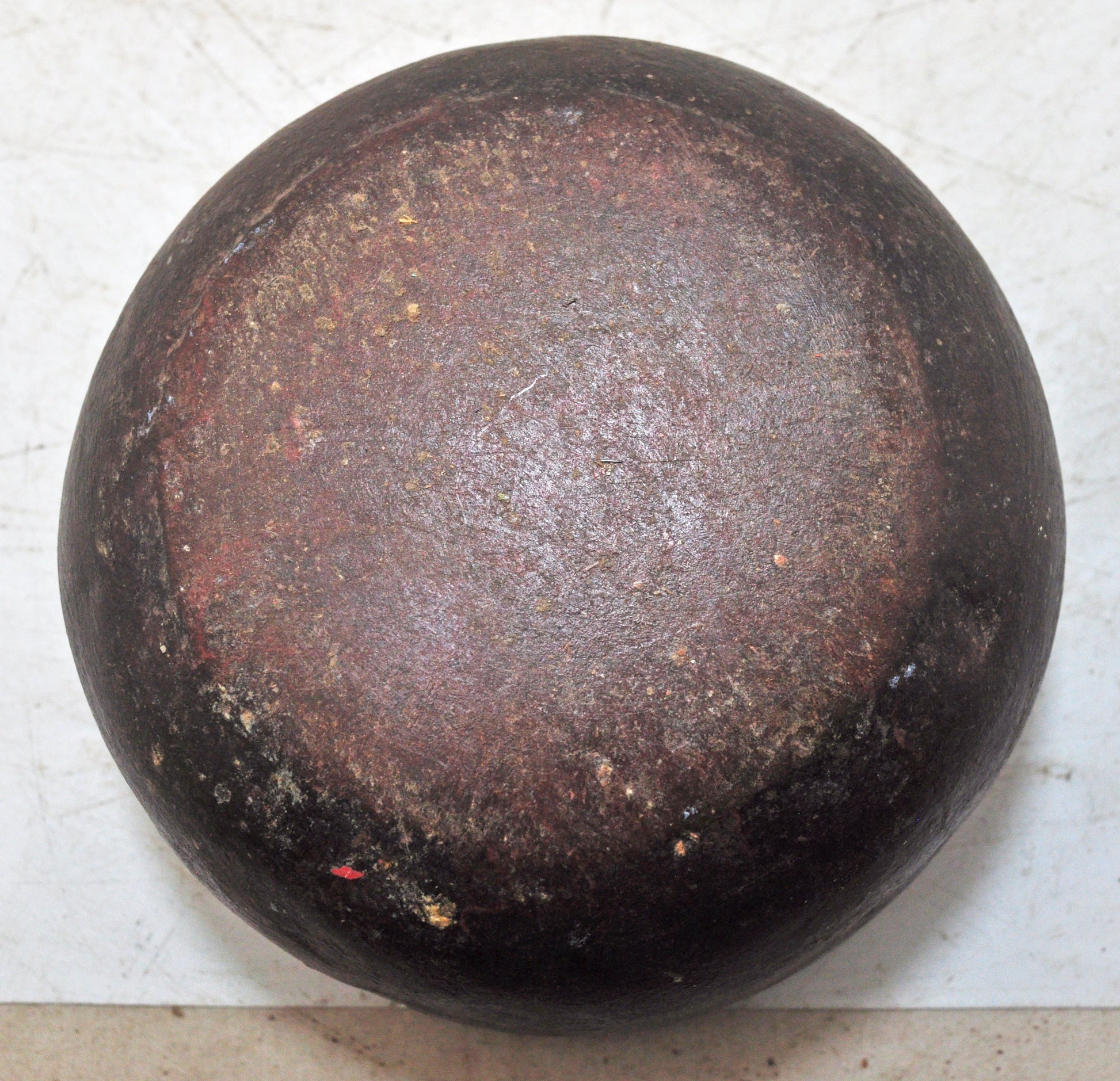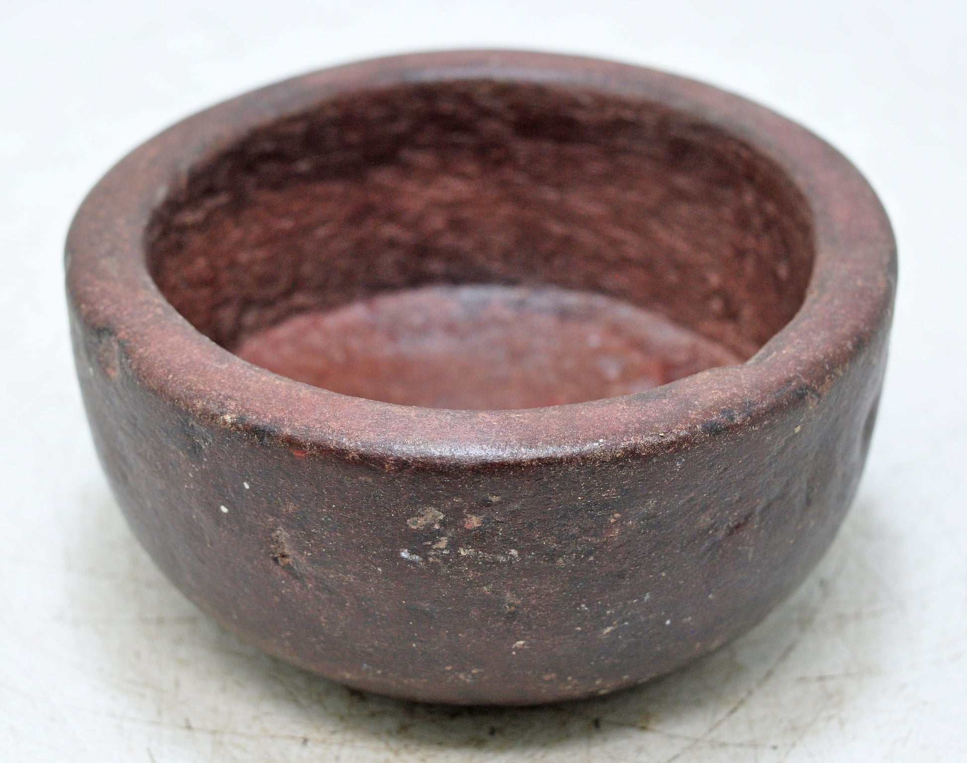 A vintage round curry bowl fashioned from sandstone, hand carved into a smooth and practical form that reflects classic Indian craftsmanship. The bowl carries a richly developed patina, displaying tones that have deepened through years of natural wear. Its overall condition is stable and well-kept, preserving both function and charm. This Indian-made piece offers an appealing blend of cultural authenticity and timeless rustic design.