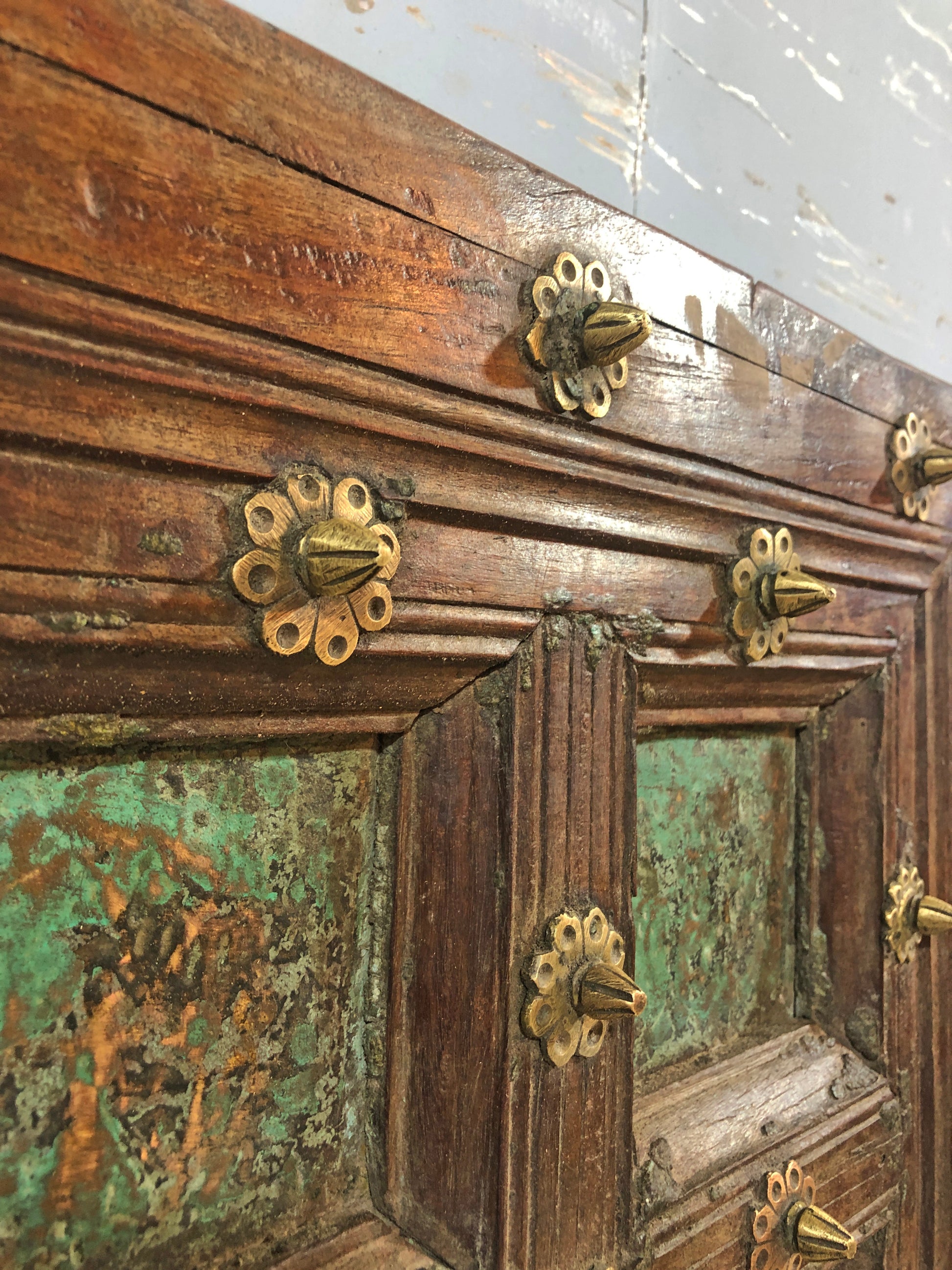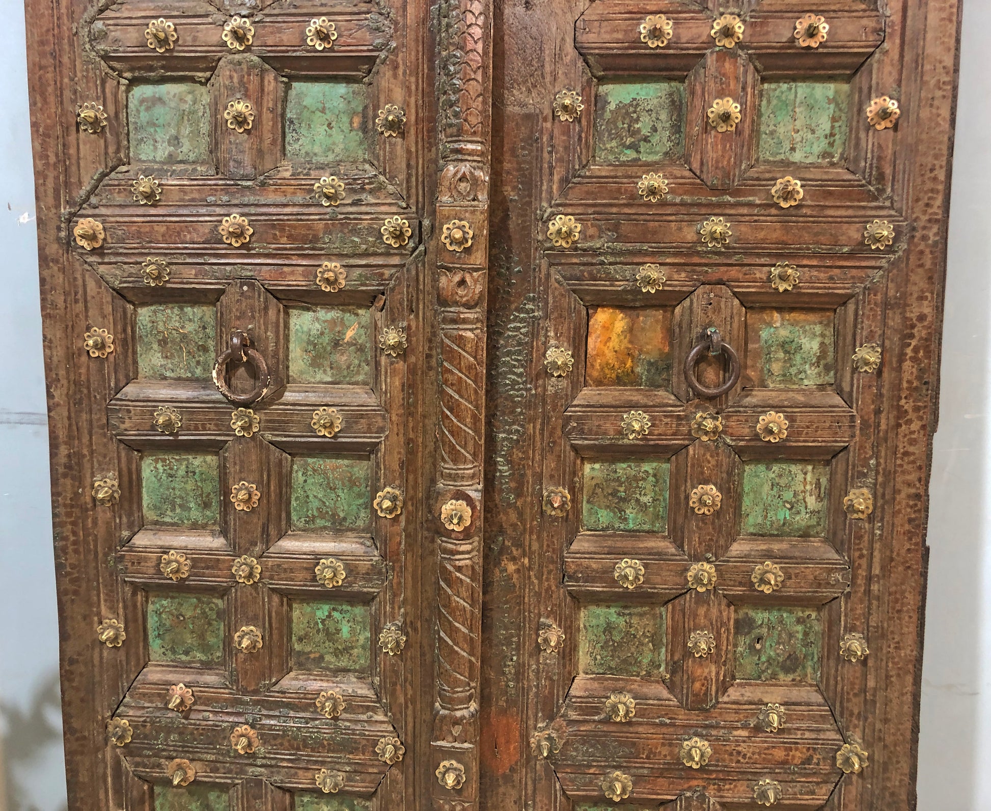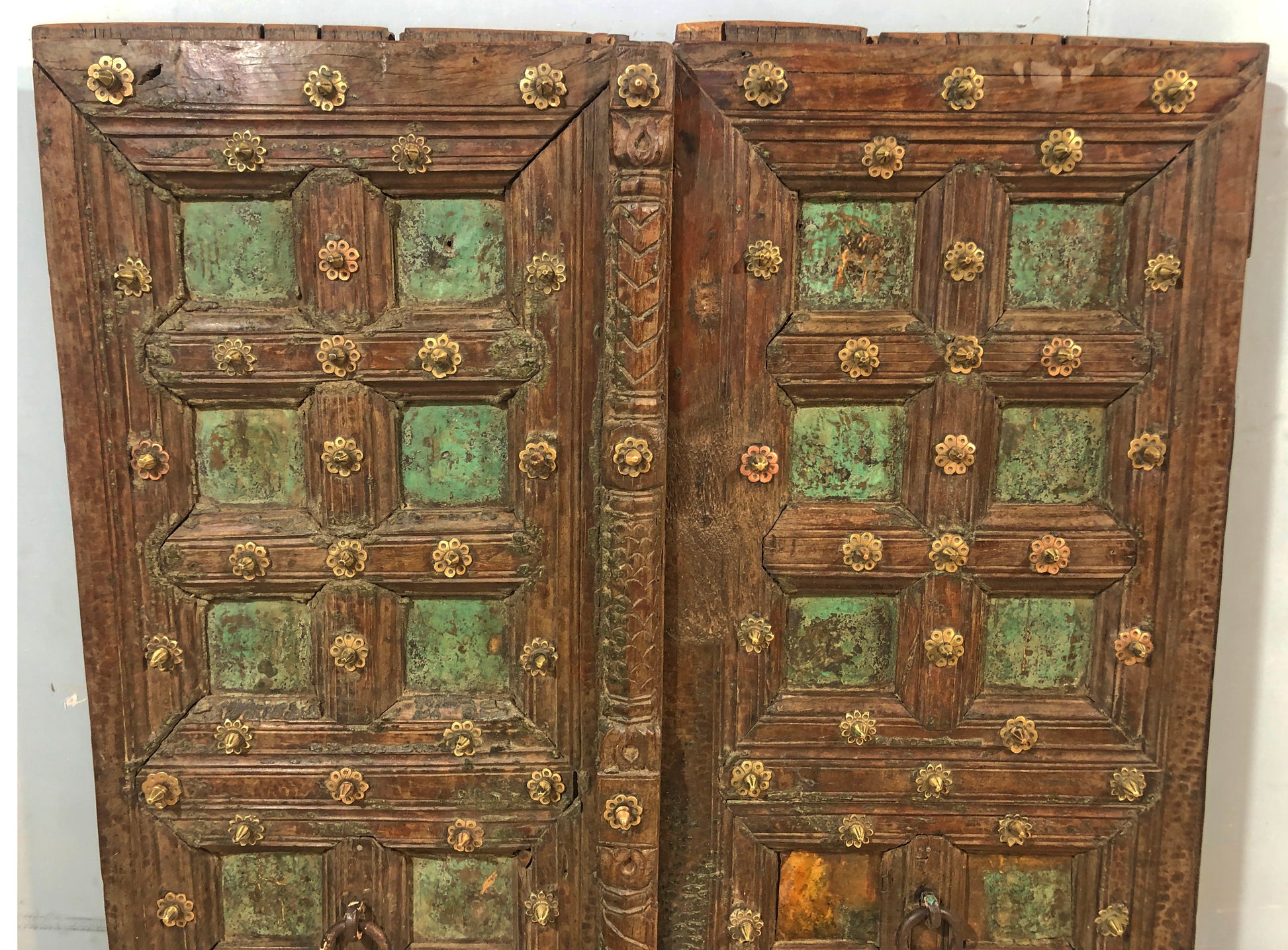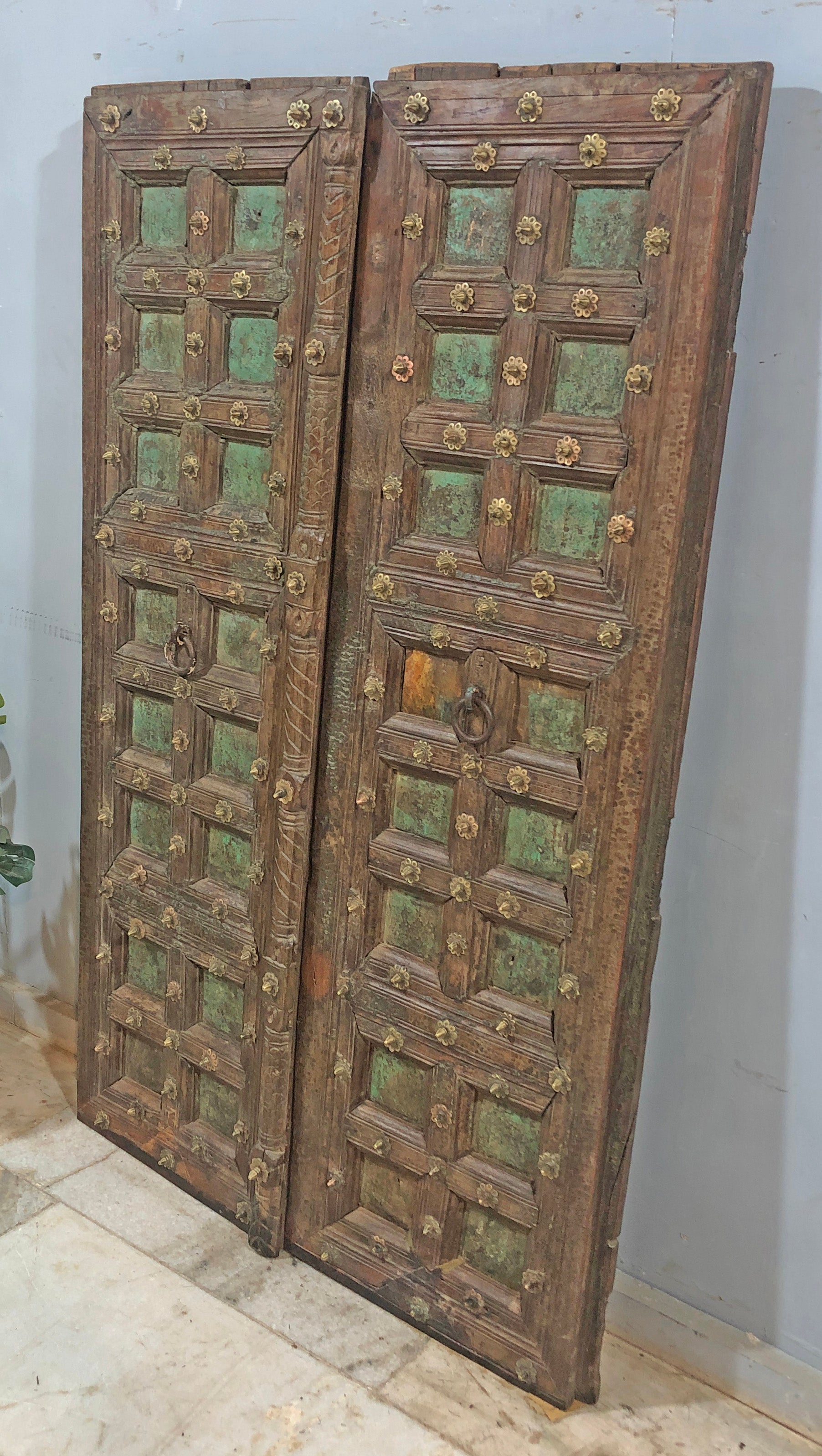 Antique Teak Wood Big Size Door Panels Pair 39x65 inches Original Old Fine Brass