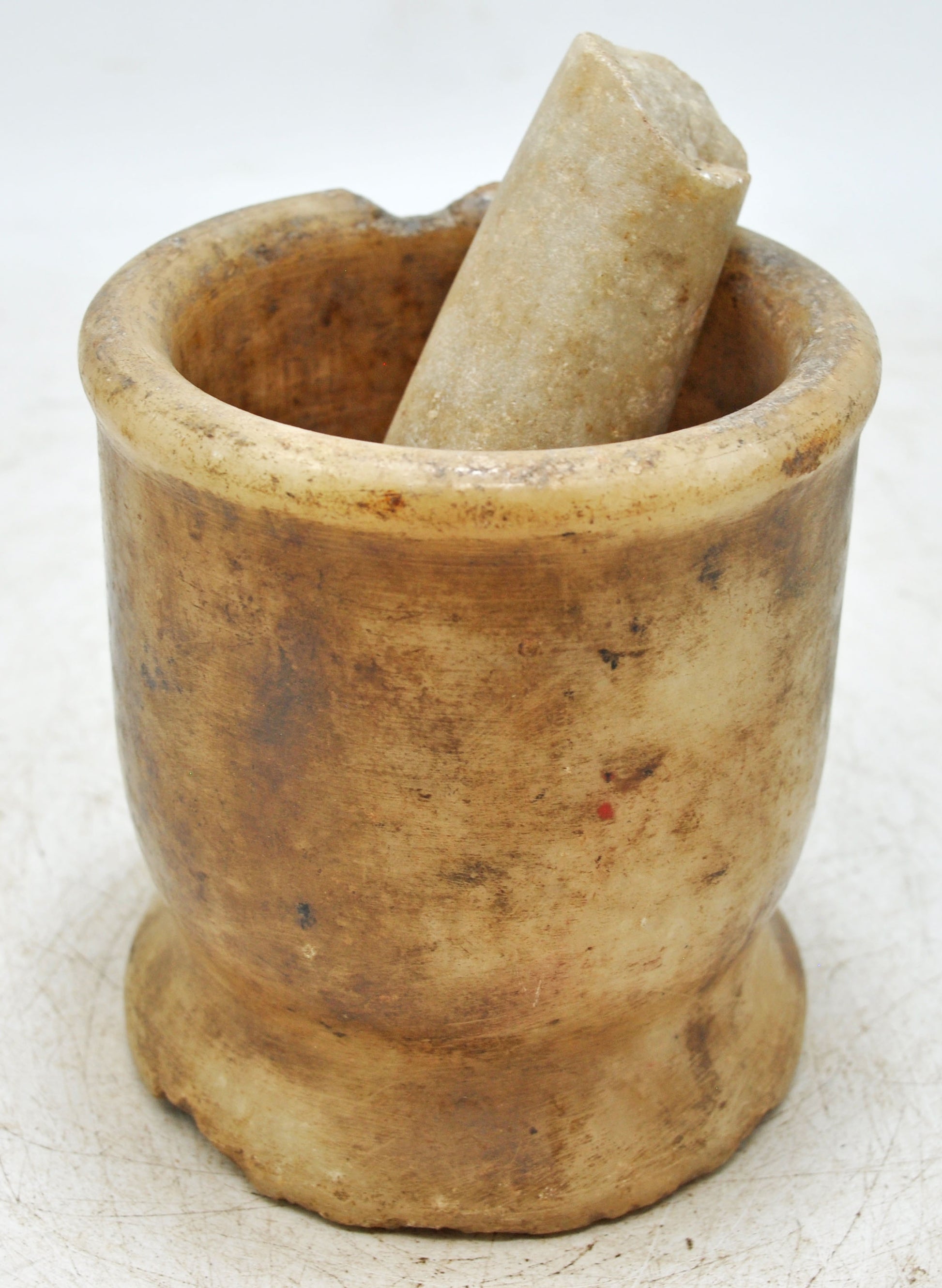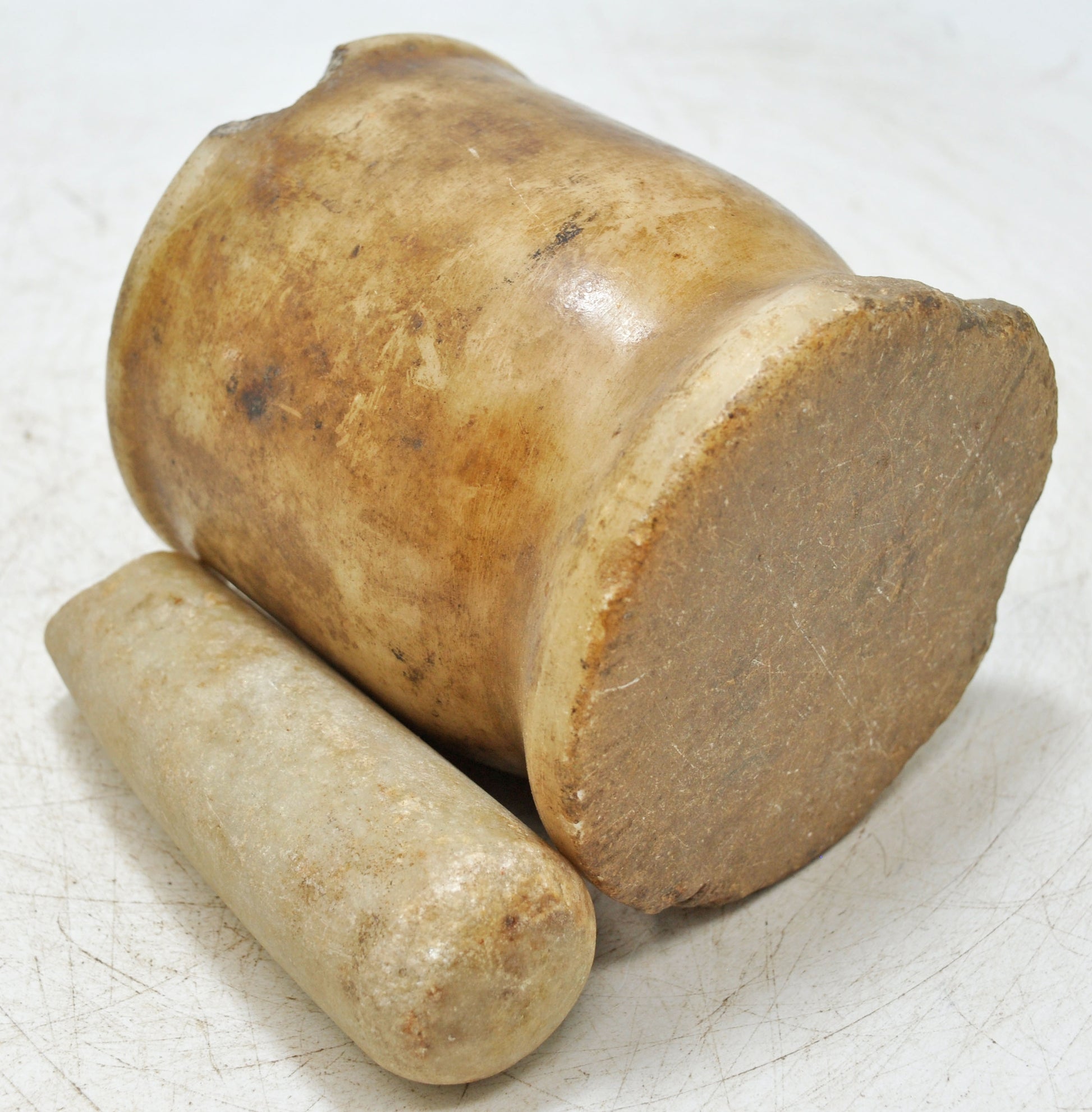 Antique White Marble Mortar and Pestle Spice Grinder Original Old Hand Carved