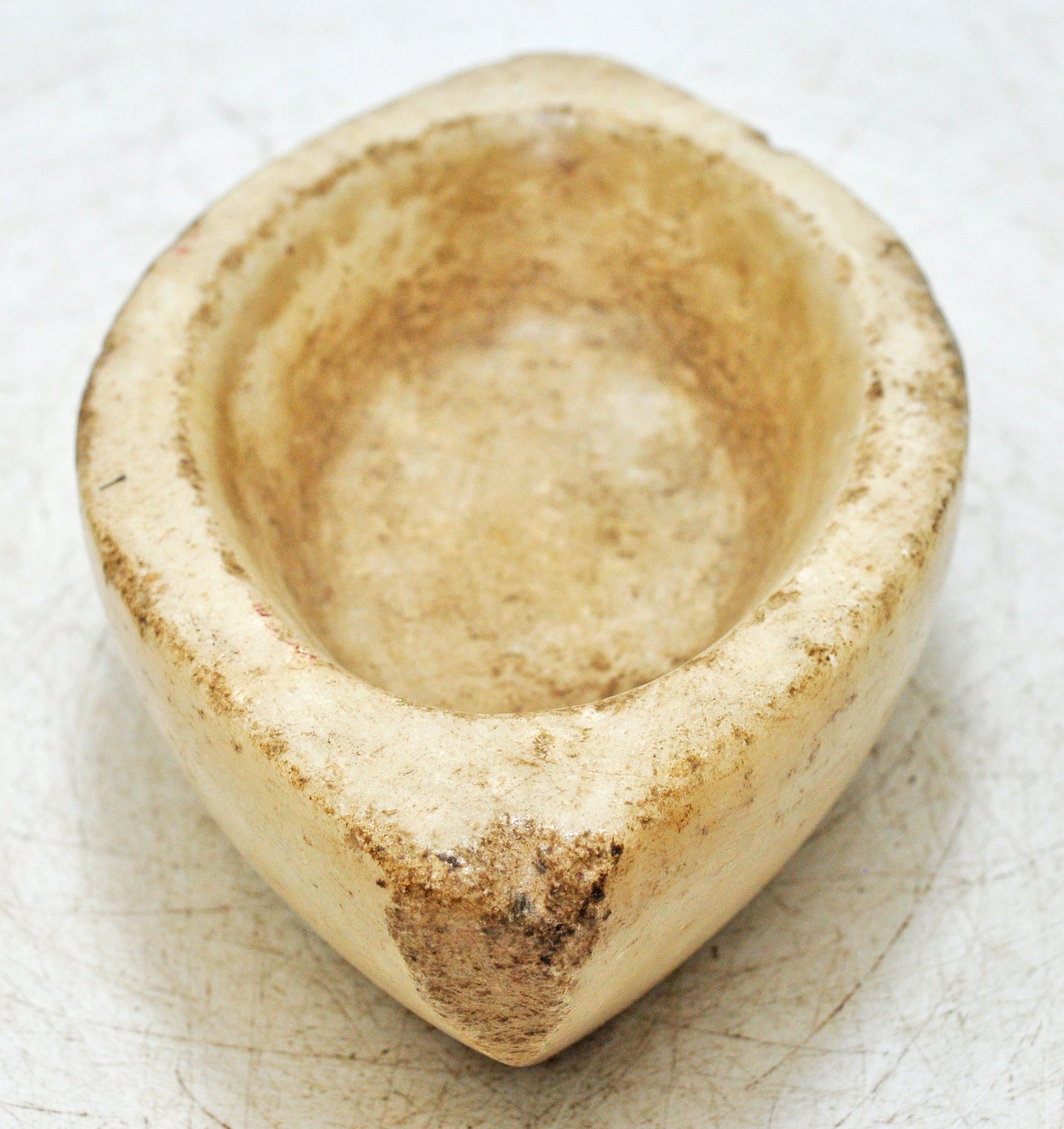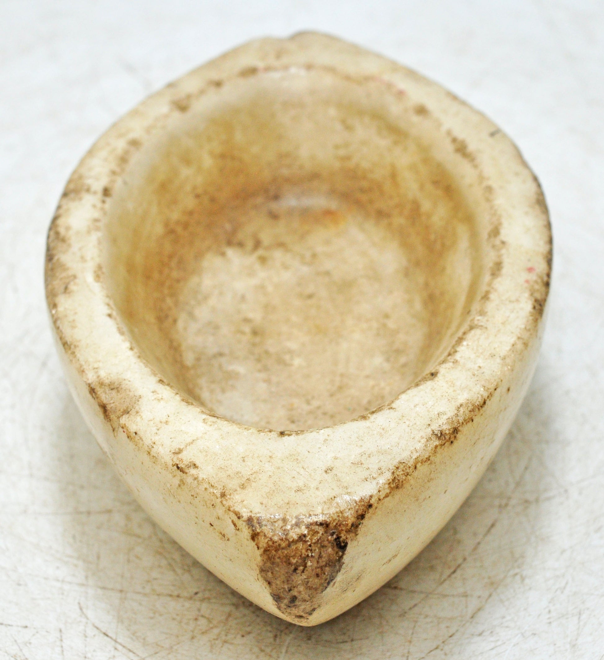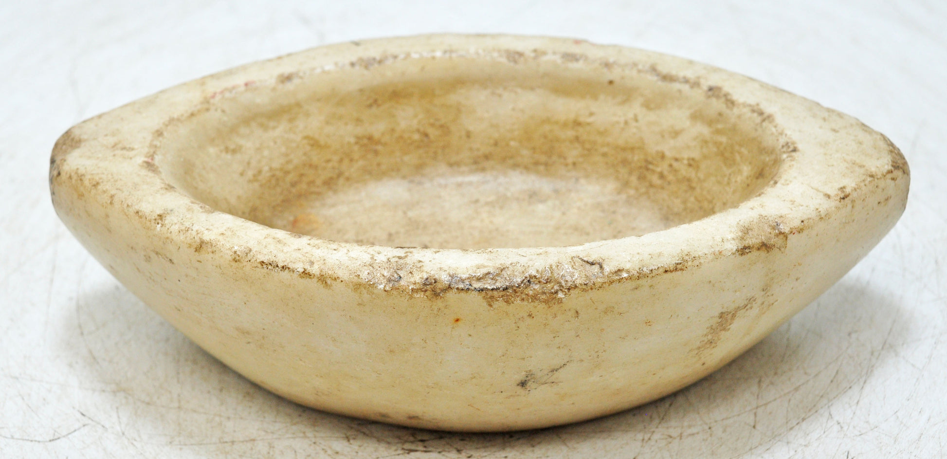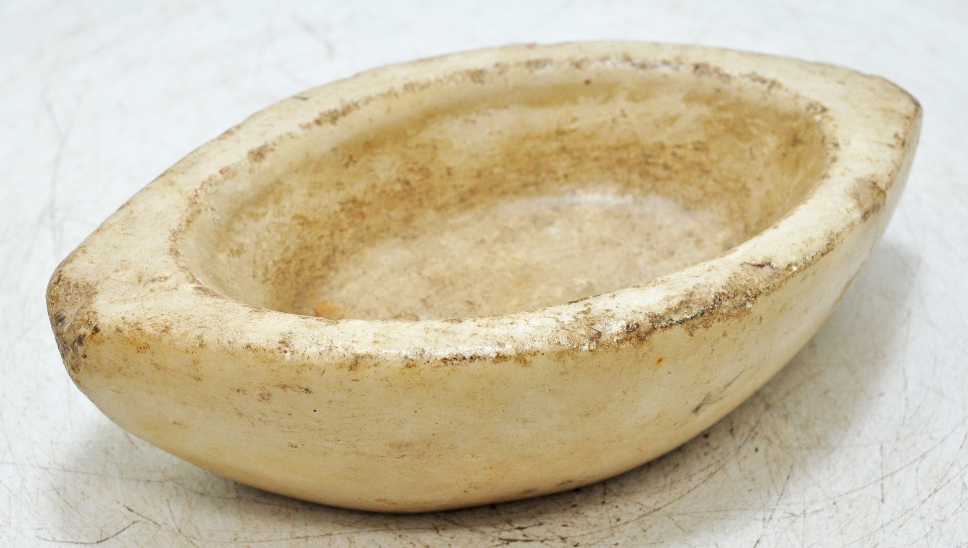 Antique White Marble Oval Spice Grinding Kharal Bowl Original Old Hand Carved
