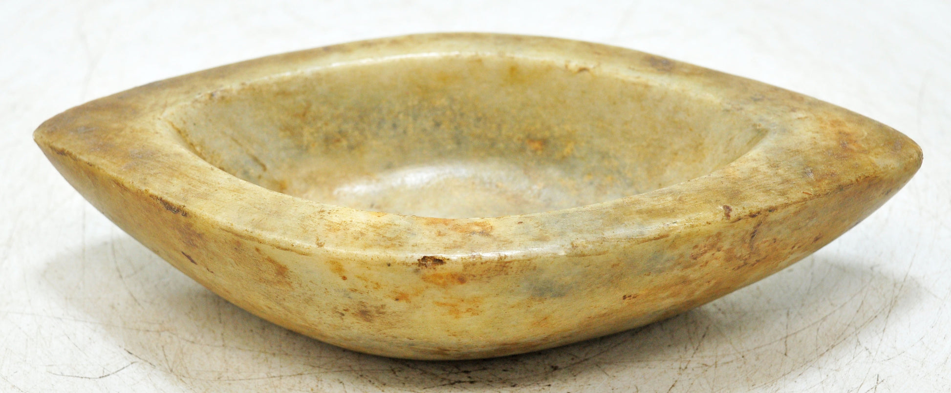 Antique White Marble Oval Spice Grinding Kharal Bowl Original Old Hand Carved