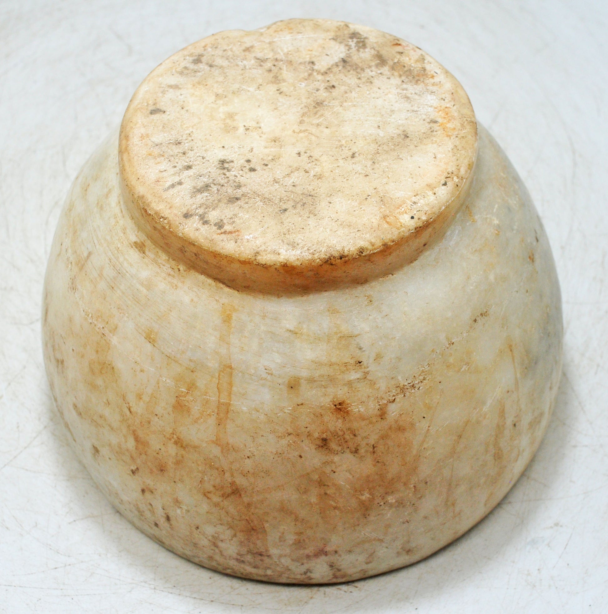 Antique White Marble Round Curry Bowl Original Old Hand Carved