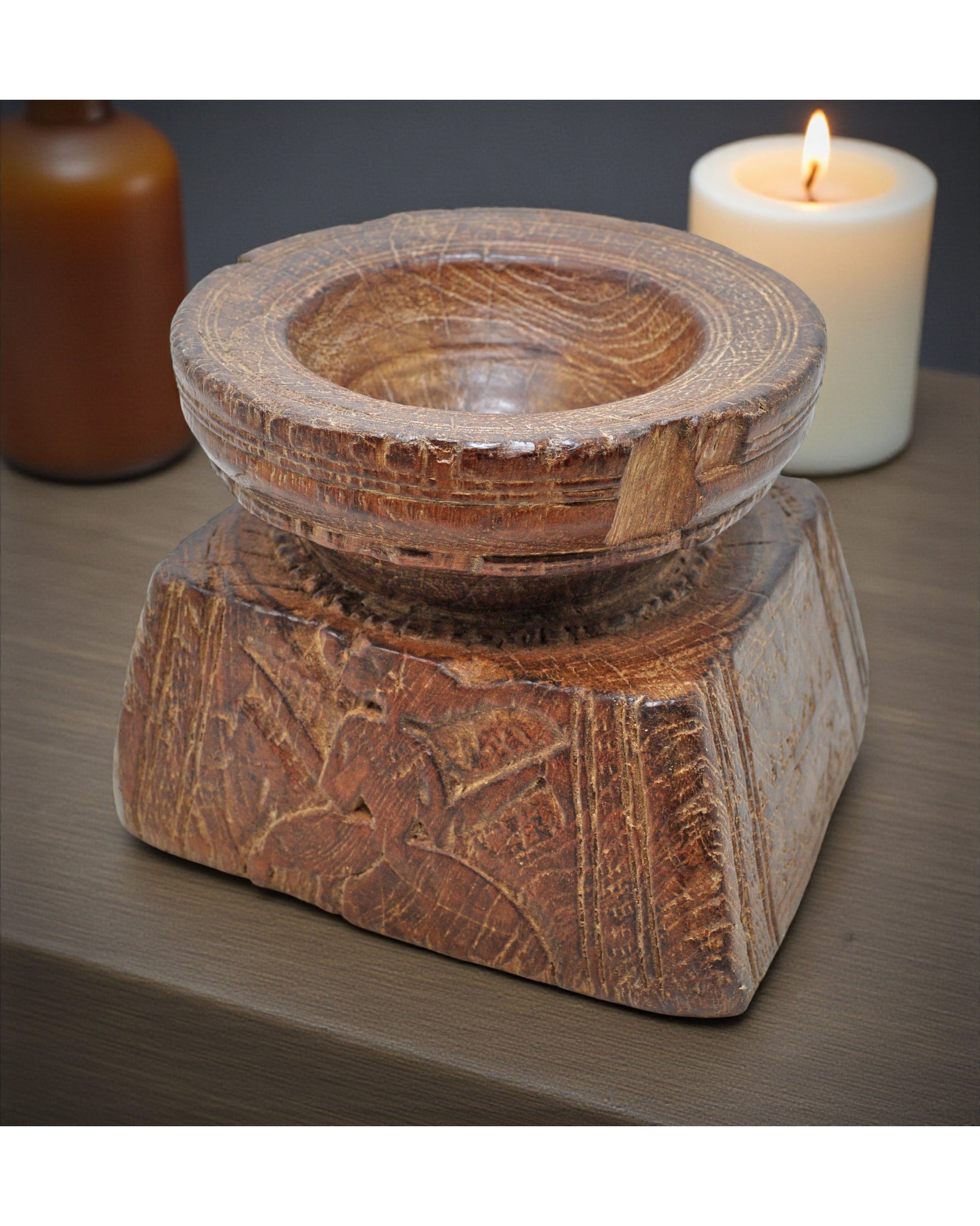 Antique Wooden Agricultulral Seed Holder Original Old Hand Carved